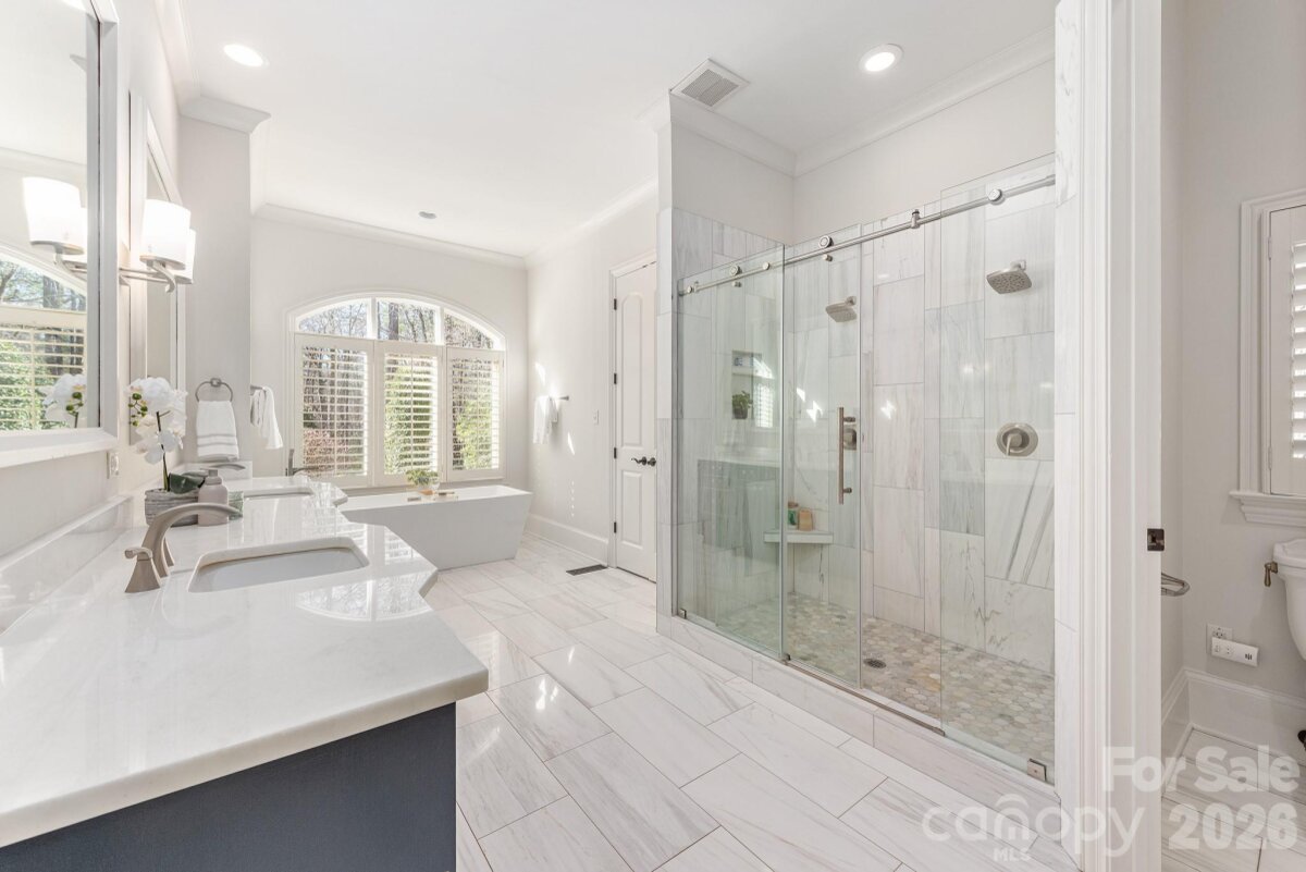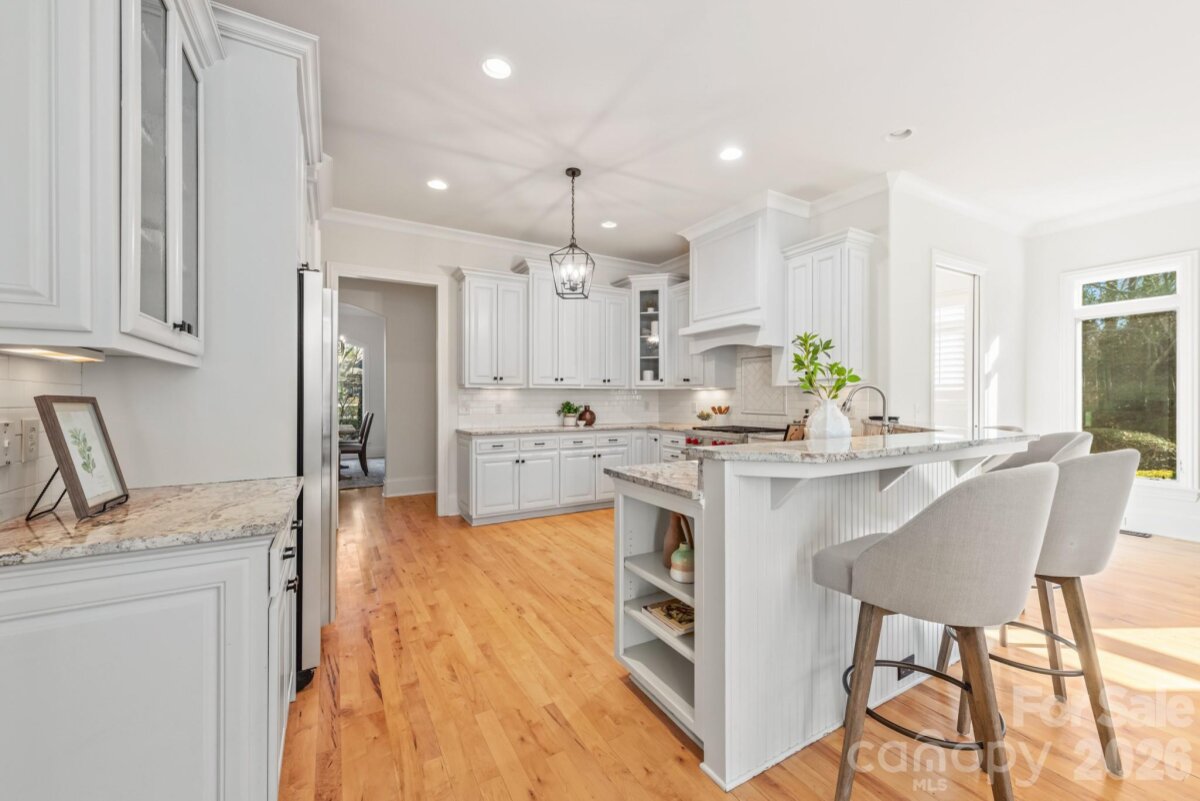 Welcome to this gorgeous home nestled in Highgate on spacious 1.45 acres with a stunning backyard. The main level includes a newly updated primary suite with a beautiful double vanity and marble countertops, heated floors, shower, a garden tub, a water closet, and a walk-in closet. The recently renovated chef's kitchen features a Wolf stove, a breakfast bar, stainless steel appliances, granite countertops and an open layout that includes a dining area and pantry. Also, on the main level are a dining room, a fireplace in the family room, a home office nook off the kitchen, a laundry room, and a two car garage with storage closet. Step outside to your private oasis off the screened in porch, where a heated pool, hot tub, and expansive patio await. The backyard is designed for entertaining, complete with a built-in barbecue and outdoor grill nestled in a beautifully landscaped/trees/woods, fenced yard. The grill and firepit are connected to the house gas. The pool is 50 feet x 23.4 feet (including tanning ledge). The depth goes from 4 feet to 6.6 feet in the middle to 4 feet. AV Equipment/Audio: The house is equipped with built in speakers in 4 rooms downstairs (kitchen, living room, bedroom and screened-in porch). It has a Sonos system and use all 4 as 1 zone, but you could create 4 separate zones if you wanted to.The rec room upstairs has 5 built-in speakers set up for surround sound. Wi-Fi: The house is equipped with a wi-fi network of repeaters across the house (1 crawl space, 2 main floor, 1 upstairs, 1 screened-in porch (so you can take zoom calls while floating in the pool). There are also ethernet ports in the house, including the one in the bedroom. New tankless water heater. HVAC has two Trane units, 2019 and 2020.