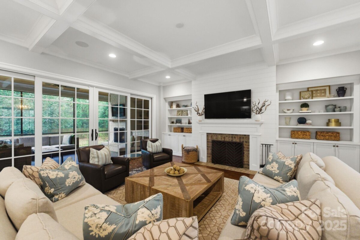 Custom built and perfectly situated on a rare .46-acre flat lot, this exceptional home offers luxury, comfort, and an ideal floorplan in the highly sought-after Cotswold neighborhood—just 10 minutes to Uptown and 5 minutes to SouthPark’s premier shopping and dining. The chef’s kitchen impresses with top-of-the-line appliances, a gas range with hood, double ovens, an oversized island, and a massive walk-in pantry complete with a second refrigerator. The kitchen flows effortlessly into a spacious living room featuring coffered ceilings, built-ins, and a cozy fireplace, creating the perfect environment for both everyday living and elegant entertaining. The main-level primary suite is a true retreat with an oversized walk-in closet with custom built-ins, dresser island and incredible storage. Primary bathroom has dual vanities, a soaking tub, and separate shower with multiple heads. A flexible front room on the main level easily serves as an office or additional dining space, connected to the kitchen and main living by a wine bar and beverage station. Outdoor living shines with a stunning screened bluestone porch featuring a wood-burning fireplace overlooking the expansive, flat yard—offering plenty of room to add a pool. Outside, you'll also find a rare, 3-car garage that leads back into the home through a mudroom/drop-zone and connects to laundry room 1 of 2! Upstairs you’ll find four generous bedrooms, including two with en suite baths and two that share an additional full bath. A second laundry room adds convenience, while the massive bonus/media room and additional loft provide incredible space for recreation, gatherings, or movie nights. This home truly combines luxury craftsmanship with everyday livability in one of Charlotte’s most coveted locations.