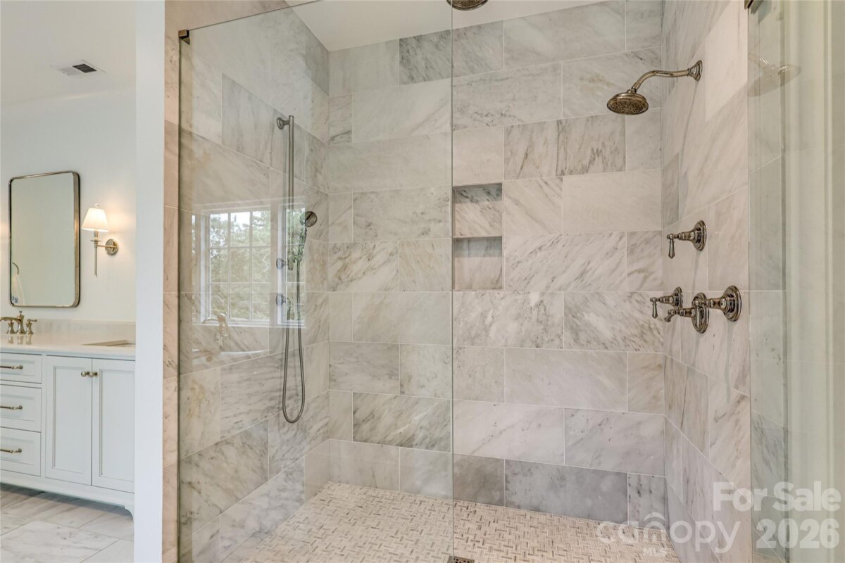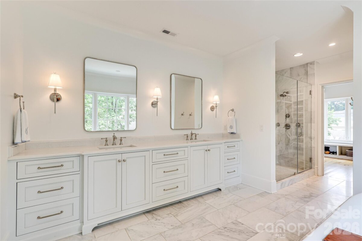 Exceptional 2022 build by Whittington Builders, thoughtfully designed by Greg Perry and located on a quiet block in the heart of Cotswold. Offering timeless style, high-end finishes, and beautifully designed living spaces. A gracious foyer opens to elegant dining and living rooms. As you would expect, the chef’s kitchen is amazing: custom cabinetry, premium appliances and a wet bar/butler’s pantry contributes to easy living with second built-in refrigerator, dishwasher & ice maker. Friend's side entrance, mud room w/ built-ins adds function and style. Light-filled family room and separate breakfast area open to a covered bluestone porch with fireplace and a flat, fenced backyard. A private study tucked between main living spaces offers flexible uses. Upstairs features primary suite, three secondary en suite bedrooms, and laundry. The third floor offers a bonus room, 5th bedroom, full bath, flex space, and conditioned storage. All just minutes from Uptown, SouthPark, and Plaza Midwood.