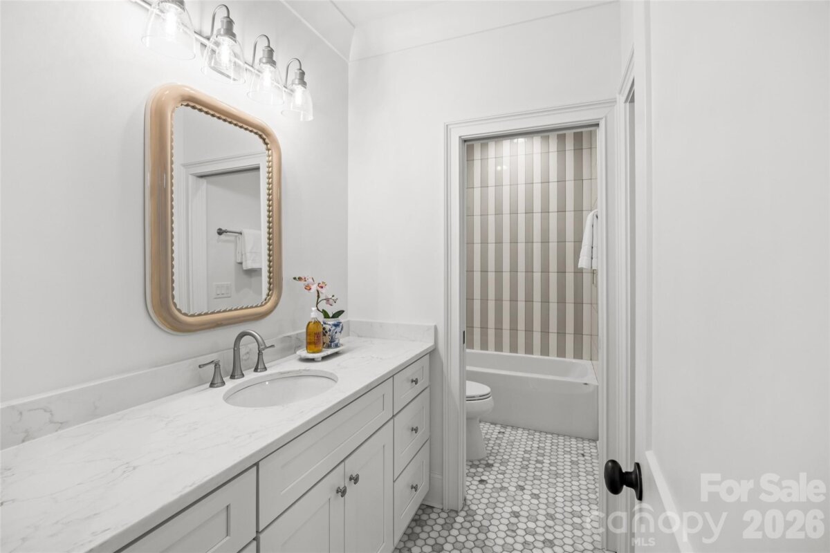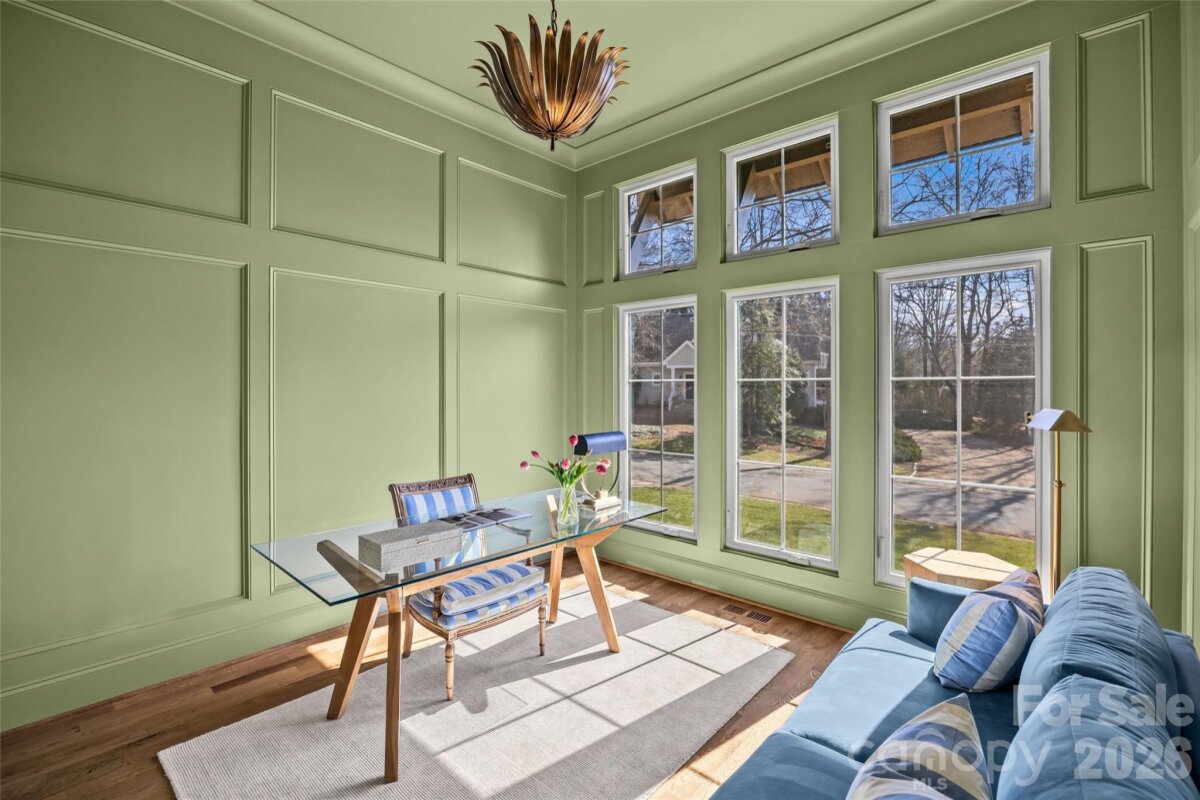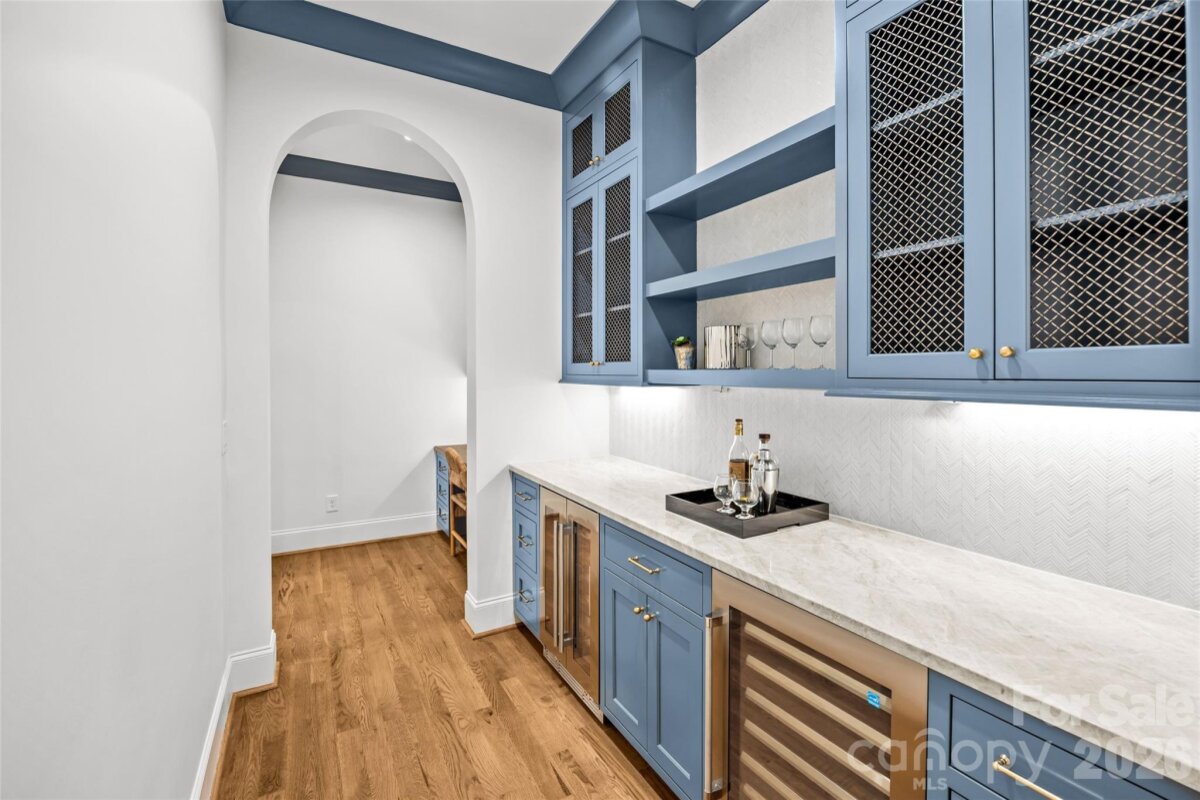 This exceptional custom home offers over 5,200 square feet of beautifully designed living space with five bedrooms and five and a half bathrooms, thoughtfully crafted for both everyday comfort and elevated entertaining. The primary suite is conveniently located on the main level, creating a private retreat complete with separate his and her walk-in closets. The spa-inspired primary bath features custom cabinetry and a dedicated makeup vanity area, blending function with refined design. Even better, the laundry room connects directly to one of the primary closet for seamless daily living. At the heart of the home is a stunning custom kitchen designed to impress. It includes a scullery for additional prep space, a walk-in pantry, a built-in coffee bar, and a cozy office nook for managing daily tasks while staying connected to the main living area. For those needing more privacy, a designated office provides a quiet and professional workspace. The dining room makes a bold statement with it's custom paneling, designer light fixture, and grasscloth ceiling, adding texture and warmth. Just off the kitchen, a bright sunroom or breakfast nook offers the perfect spot for casual meals and morning coffee. Upstairs, a spacious bonus room provides endless flexibility for a media room, playroom, or lounge. Multiple flex spaces throughout the home allow for a homework nook, craft room, reading space, or whatever your lifestyle requires. A dedicated workout room makes prioritizing health and wellness effortless. Each secondary bedroom is generously sized, with beautifully appointed bathrooms throughout. And don't miss the main floor powder room with it's showstopping custom viola calacatta marble vanity paired with stunning mural wallpaper, creating a true designer moment! Practical spaces include a functional mudroom and an attached two-car garage for convenience and storage. Outdoor living is just as impressive. A covered patio features a full kitchenette and fireplace, making it ideal for entertaining year-round. The large, fenced-in backyard provides ample room for play, or pets. With thoughtful details, luxury finishes, and versatile spaces throughout, this home offers the perfect blend of elegance, comfort, and functionality — designed to grow with you for years to come! Come take a look, and make this gem of a home yours!