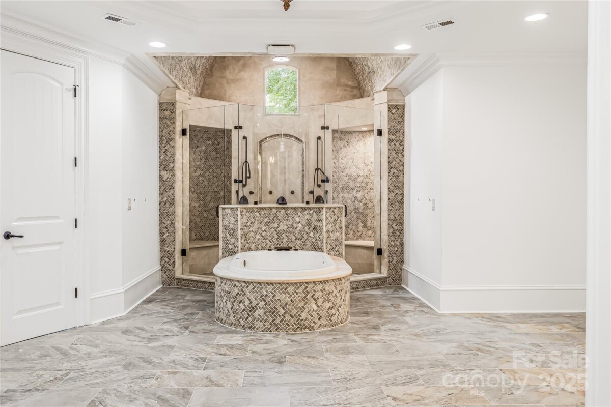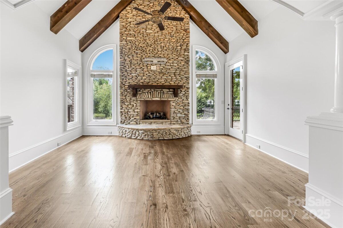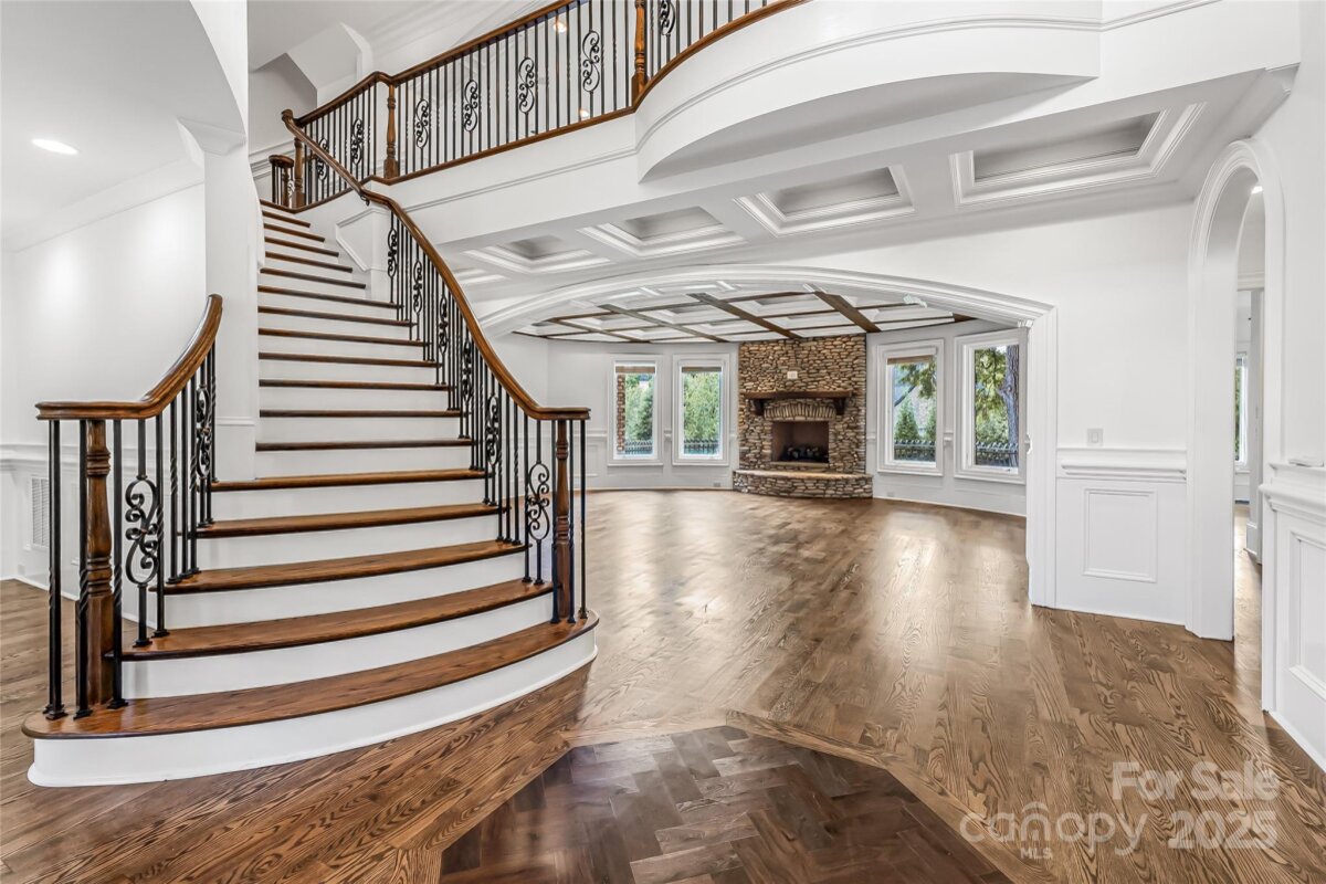 Located in the prestigious gated community of Chatelaine in Waxhaw, this exquisite 3-story Old World Architectural Style Home showcases gorgeous stonework on the exterior and an interior where every room offers something unique from soaring cathedral ceilings to custom wood finishes and detailed moldings throughout. Three floor-to-ceiling stone fireplaces anchor the living rooms on the main and upper levels as well as the den, creating warmth and elegance in every gathering space. The gourmet kitchen boasts custom cabinetry, high-end granite countertops, and stone backsplash, while the primary suite features a spa-inspired walk-through all-stone shower and whirlpool tub. The main floor includes a private office, and the third floor offers an extra-large recreational room perfect for a movie theater, game room, or gym, along with a bonus room and half bath. Outside, enjoy serene pond views and mature landscaping, with community walking trails and a picturesque pond just steps away.