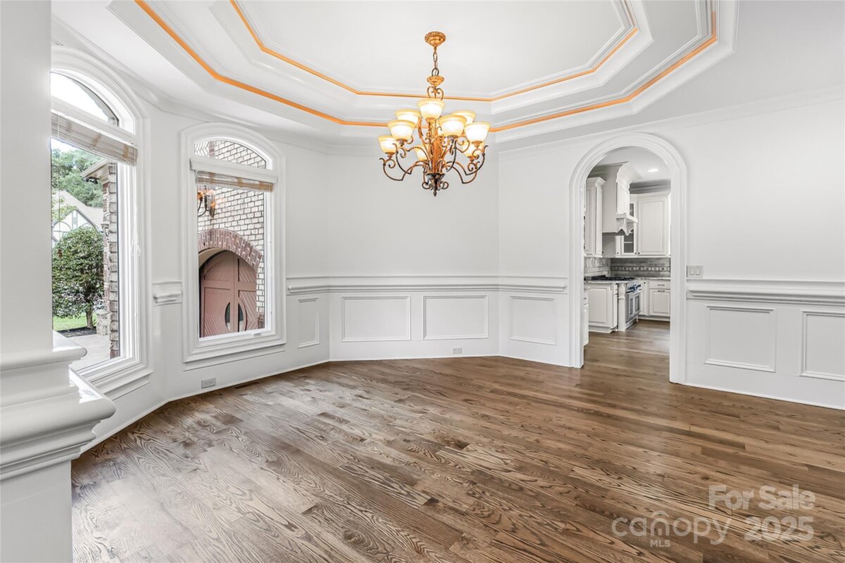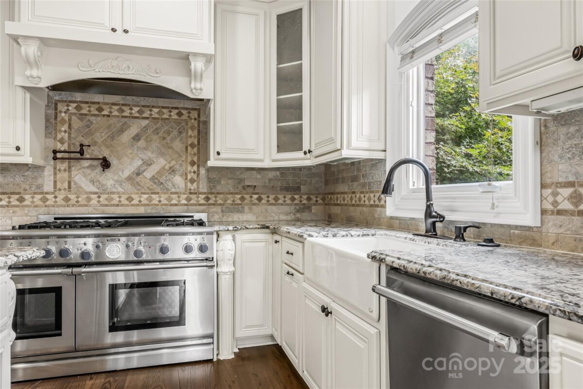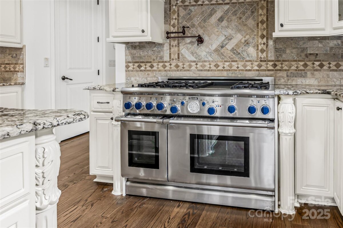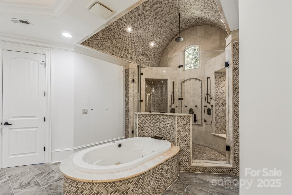 Located in the prestigious gated community of Chatelaine in Waxhaw, this exquisite 3-story Old World Architectural Style Home showcases gorgeous stonework on the exterior and an interior where every room offers something unique from soaring cathedral ceilings to custom wood finishes and detailed moldings throughout. Three floor-to-ceiling stone fireplaces anchor the living rooms on the main and upper levels as well as the den, creating warmth and elegance in every gathering space. The gourmet kitchen boasts custom cabinetry, high-end granite countertops, and stone backsplash, while the primary suite features a spa-inspired walk-through all-stone shower and whirlpool tub. The main floor includes a private office, and the third floor offers an extra-large recreational room perfect for a movie theater, game room, or gym, along with a bonus room and half bath. Outside, enjoy serene pond views and mature landscaping, with community walking trails and a picturesque pond just steps away.