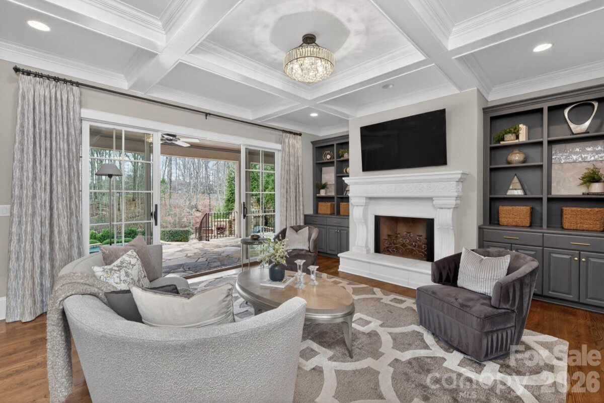 Experience resort-style living in this exceptional custom-built luxury home, ideally located in Skyecroft—one of the most sought-after gated communities south of Charlotte. Designed with an open, light-filled floor plan, the home seamlessly connects indoor and outdoor living while capturing stunning pond and pool views from expansive covered porches on both levels. The chef’s kitchen is perfectly suited for entertaining, opening to the family room and flowing effortlessly to the screened porch and outdoor living areas. Professionally equipped with top-of-the-line Wolf and Sub-Zero appliances, the kitchen also features a generous center island with seating, storage, and prep sink, along with a spacious walk-in pantry. A main-level guest suite offers convenient patio access, while the expansive primary suite serves as a private retreat with direct access to the upper balcony, and an oversized walk-in closet leading to large unfinished storage area. Secondary ensuite bedrooms each feature walk-in closets and private balconies. Outdoor living is unmatched, highlighted by a custom pool with waterfall, expansive patio, and a grand fireplace—ideal for both everyday enjoyment and entertaining year-round. Conveniently located just minutes from top-rated schools, shopping, and dining, this home offers luxury, privacy, and an exceptional lifestyle.