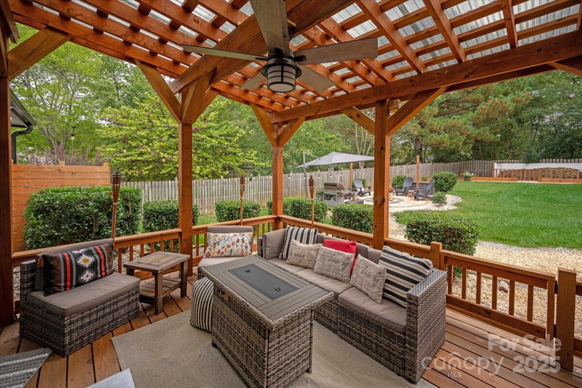 Stylish and move-in ready home in the heart of Ballantyne! This beautifully updated ranch home in sought-after Raeburn blends timeless comfort with modern upgrades. Step inside to light-filled living spaces, an open layout, and a renovated kitchen designed for everyday living and easy entertaining. The Bathrooms feature modern updated finishes and thoughtful design. Exterior upgrades include cedar accent shutters, columns, and pergola for added charm. The primary suite feels like a retreat with its spa-inspired bath and walk-in closet. Enjoy morning coffee under the pergola or host weekend gatherings in the private, fenced backyard surrounded by mature trees. Recent updates include HVAC, furnace, spray insulation, tankless water heater, and water filtration system. Conveniently located near top-rated schools, parks, and Ballantyne’s best shops and dining — this home perfectly balances lifestyle and location.