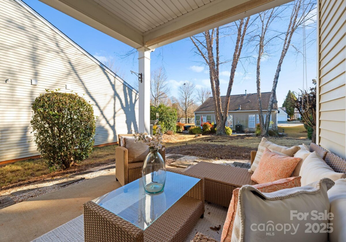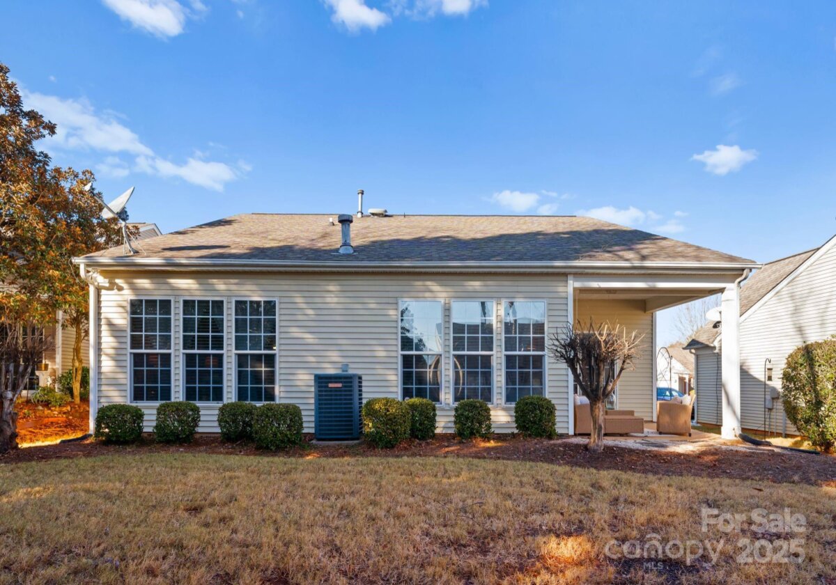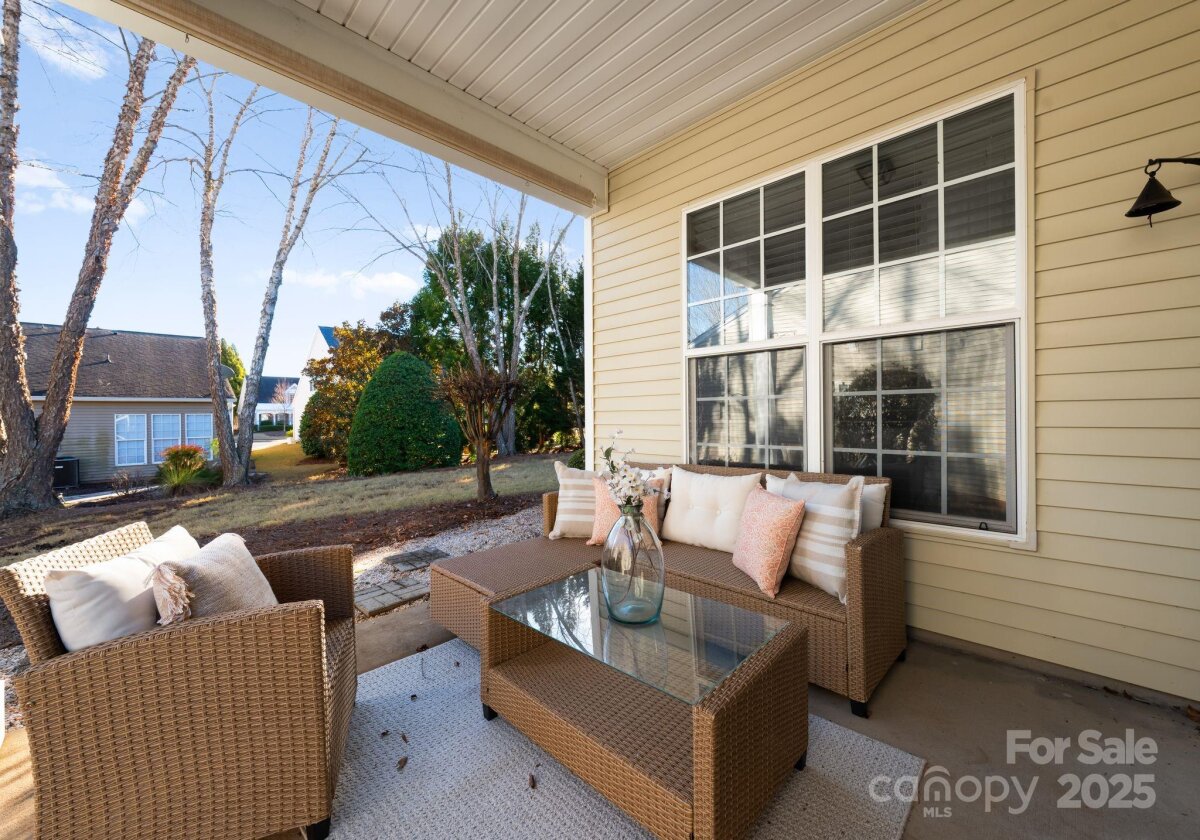 Welcome home to this beautiful one-story, 2-bed, 2-bath ranch with a dedicated office in the heart of Ballantyne, just minutes from Blakeney, Stonecrest, and Waverly for shopping, dining, and entertainment. Designed for low-maintenance living, this inviting patio home offers a comfortable and functional layout ideal for everyday living. Inside, the open floor plan connects the kitchen, dining area, and living room with a cozy gas-log fireplace—perfect for both daily living and entertaining. Expansive windows fill the space with natural light. The spacious primary suite features a walk-in closet and a private en-suite bath, while the secondary bedroom and full bath provide comfortable accommodations for guests. The dedicated office offers flexibility for remote work, a den, or hobby space. A conveniently located laundry room adds to the home's practical design. Enjoy outdoor living on the rear porch with natural surroundings, and appreciate the ease of ownership with low quarterly HOA fees that include lawn maintenance. All of this is located in one of Charlotte’s most desirable and convenient communities. Rental restrictions apply.