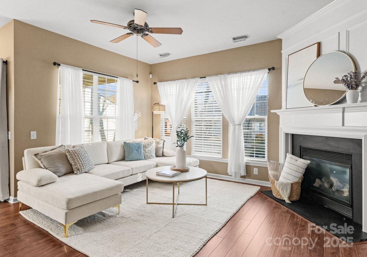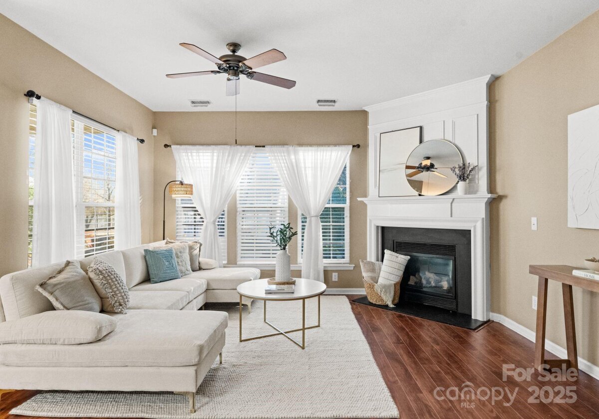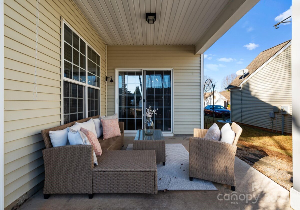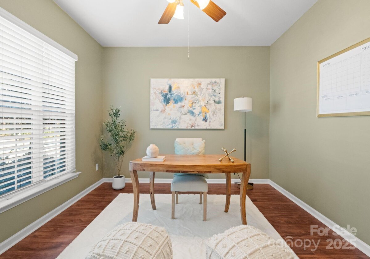 Welcome home to this beautiful one-story, 2-bed, 2-bath ranch with a dedicated office in the heart of Ballantyne, just minutes from Blakeney, Stonecrest, and Waverly for shopping, dining, and entertainment. Designed for low-maintenance living, this inviting patio home offers a comfortable and functional layout ideal for everyday living. Inside, the open floor plan connects the kitchen, dining area, and living room with a cozy gas-log fireplace—perfect for both daily living and entertaining. Expansive windows fill the space with natural light. The spacious primary suite features a walk-in closet and a private en-suite bath, while the secondary bedroom and full bath provide comfortable accommodations for guests. The dedicated office offers flexibility for remote work, a den, or hobby space. A conveniently located laundry room adds to the home's practical design. Enjoy outdoor living on the rear porch with natural surroundings, and appreciate the ease of ownership with low quarterly HOA fees that include lawn maintenance. All of this is located in one of Charlotte’s most desirable and convenient communities. Rental restrictions apply.