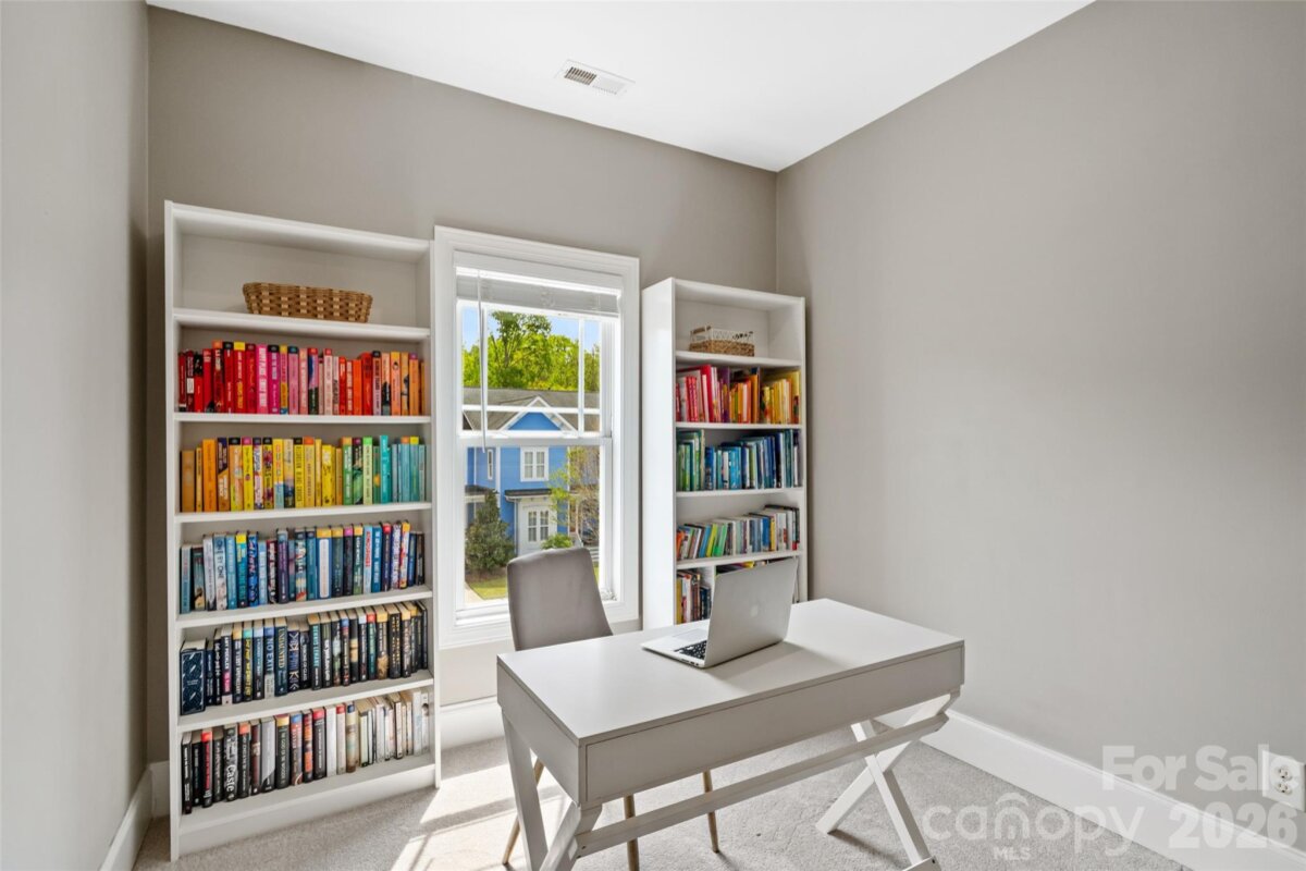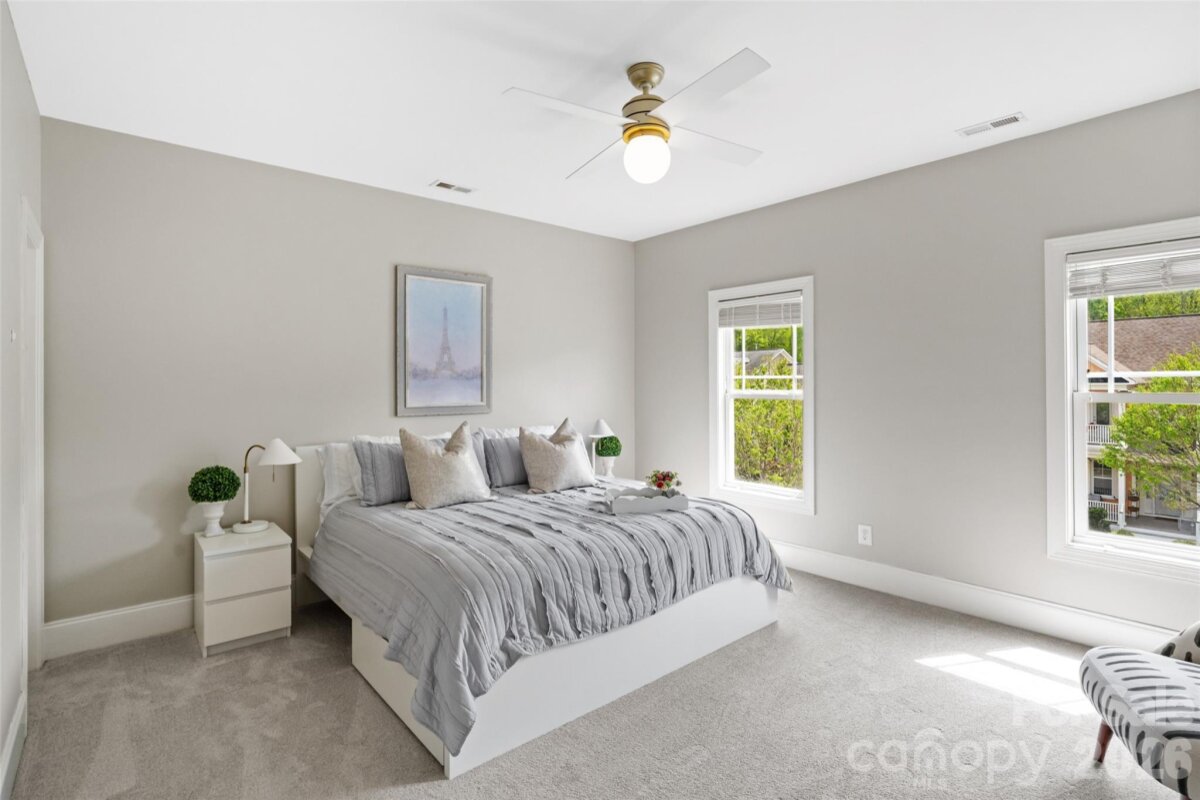 This Charleston-style residence offers 3,185 square feet of beautifully finished living space, with timeless Southern architecture and refined, modern design. Located in the highly sought after Ardrey neighborhood. From the moment you arrive, the home’s classic curb appeal is undeniable—welcomed by a charming covered front porch perfect for rocking chairs and relaxed evenings. Inside, the main level showcases rich hardwood floors, a light-filled and functional layout, and thoughtfully designed living spaces enhanced by custom built-ins and updated finishes throughout. The kitchen features fresh white cabinetry and a clean, modern aesthetic, seamlessly connecting to the main living areas for effortless everyday living and entertaining. The primary suite is conveniently located on the main level and serves as a private retreat, complete with hardwood flooring added in recent years. Bathrooms and the laundry room have been tastefully updated, while modern lighting throughout the home creates a cohesive, elevated feel that beautifully complements the Charleston-inspired exterior. Upstairs, you’ll find brand new carpet, and generously sized secondary bedrooms, each offering large walk-in closets. Additional walk-in storage throughout the home provides exceptional functionality. A true standout feature is the detached finished living quarters—complete with its own private full bath—offering a rare and highly versatile space ideal for multigenerational living, a private guest retreat, executive home office, or boutique-style home based business. This is a unique opportunity rarely found in the market. Outdoor living continues with a screened-in porch, perfect for year-round enjoyment. There's also a rear-entry two-car garage accessed via a private alley, enhancing both convenience and curb appeal. Crawl space is encapsulated for peace of mind. A seamless blend of charm, modern updates, and flexible living spaces, this home presents a distinctive lifestyle opportunity in one of Charlotte’s most sought-after settings. Top-rated schools, close to the new Ballantyne Bowl and easy access to I-485. Yard maintained by the HOA, playground and greenery space/parks thoughout, clubhouse and pool.