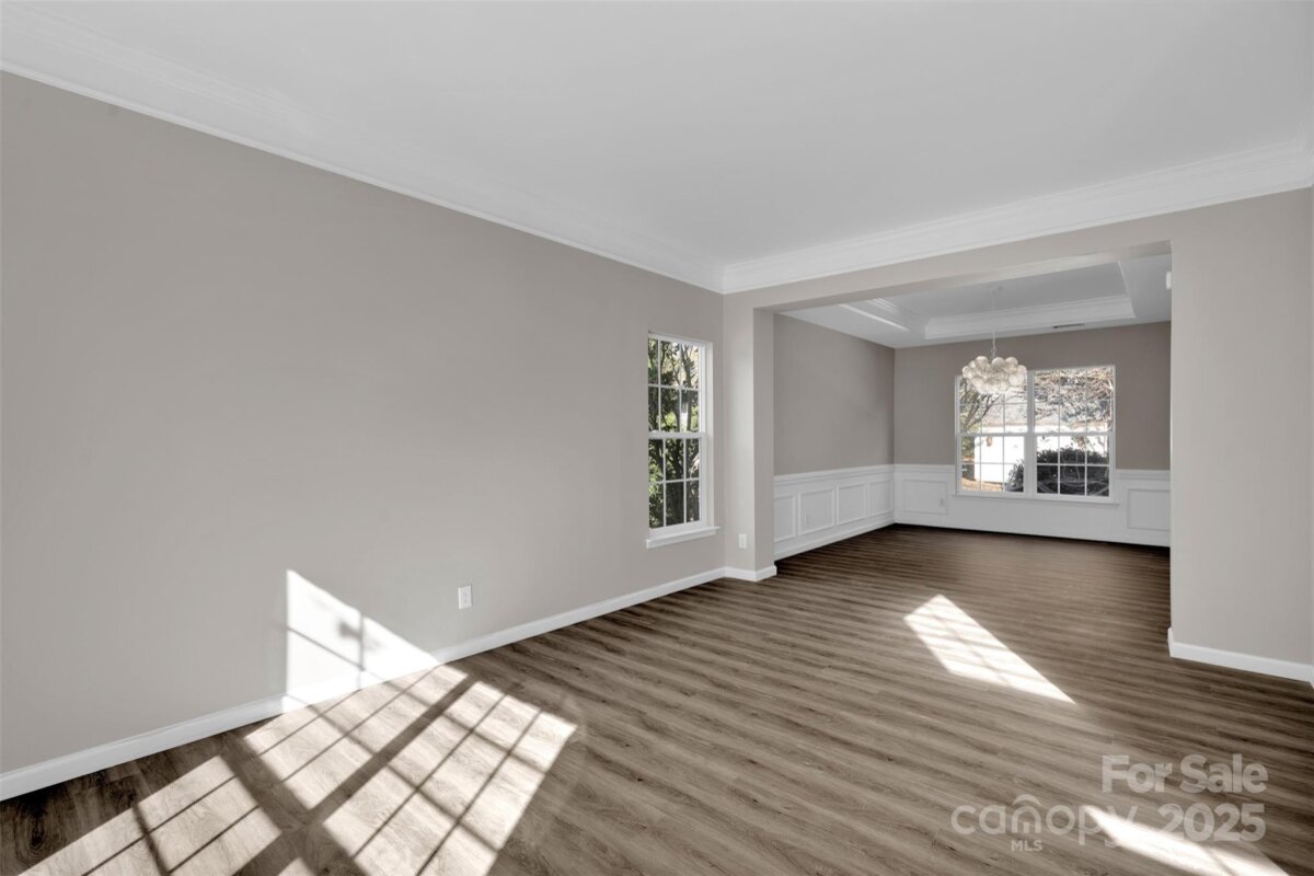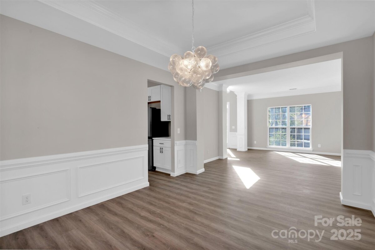 WELCOME HOME to this STUNNING UPDATED CUL-DE-SAC HOME IN VERY DESIRABLE BLAKENEY HEATH!! Ryland Stratford plan has 4 Bedrooms, 2 1/2 Baths, 2500 Square Feet with a 1/4 acre fenced-in yard with custom shed, deck, and patio. COMPLETELY REMODELED NEW KITCHEN with Quartz countertops, tile backsplash, soft close 42" cabinets, center island, farm sink, pro-style spray faucet, countertop pushbutton-activated disposal and HUGE walk-in pantry! NEW LVP PLANK FLOORING and NEUTRAL PAINT throughout the first level. Extensive chair rail and wainscoting in Living Room, Dining Room, and Hallway. Family Room has Gas Fireplace and a ceiling fan with ample room for furniture and a Big Screen TV. Primary Bedroom has Trey ceiling and plenty of room for a King size bed and work area! Many light fixtures upgraded, newer HVAC system, epoxy floor in large 2 car garage with side entry door and storage. Mature landscaping, custom shed with lighting and electric and large deck in backyard. Top rated CMS schools, close to Blakeney Heath and Ballantyne shopping, dining, and highways! Won't last!!