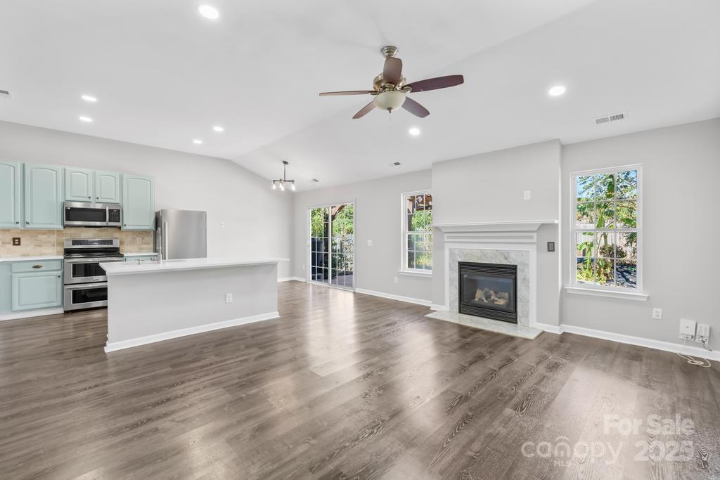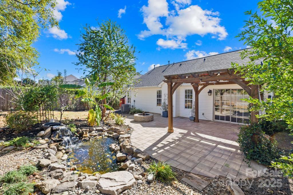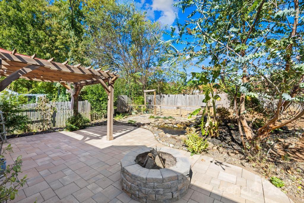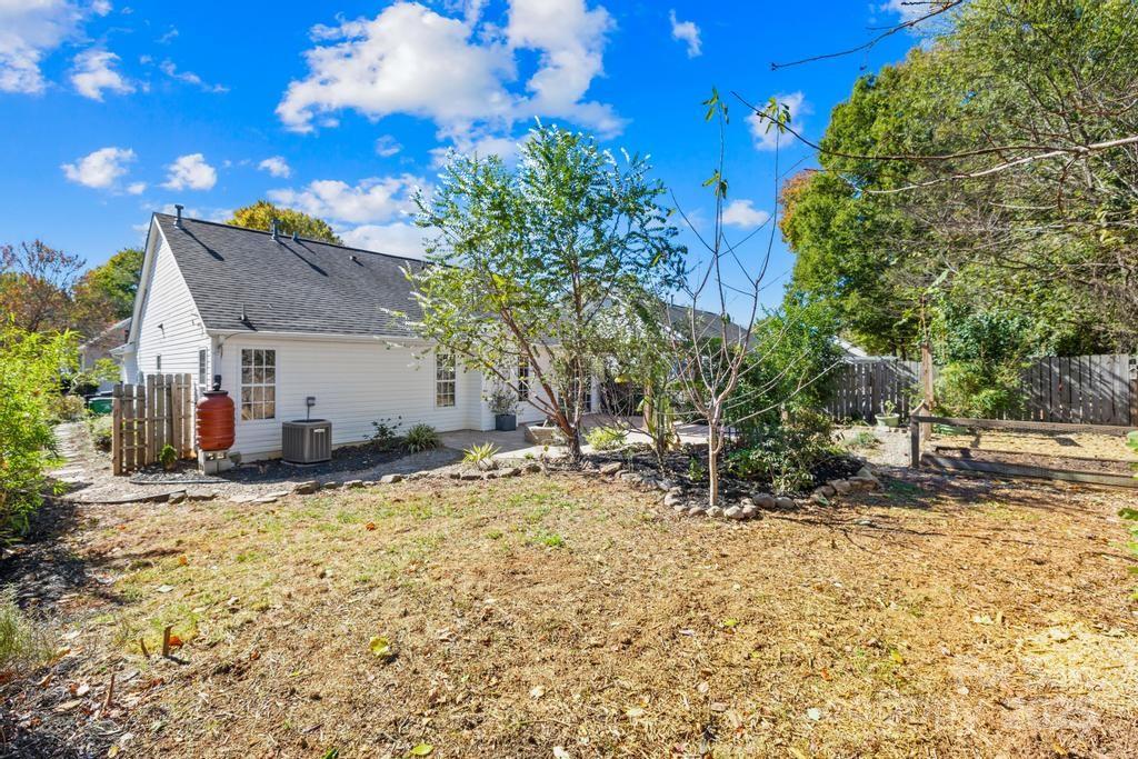Welcome to this charming 3-bedroom, 2-bath ranch in desirable Southampton, ideally located near Ballantyne’s shopping, dining, and grocery! Built in 2001, this beautifully maintained home offers an inviting open floor plan with a spacious living room featuring a gas-log fireplace, perfect for cozy gatherings. The bright kitchen includes a center island with SS single-basin sink, Energy Star appliances, and breakfast area, flowing easily into the main living space. The primary suite provides a retreat with oversized, walk-in shower! Layout includes an additional 2 bedrooms and secondary full bath with a combo shower/tub. Step outside to enjoy a private, fenced backyard oasis complete with an oversized patio, fire pit, and tranquil garden featuring a pond, raised planter beds, and rain barrels. The property is enhanced by fruit trees—including apple, fig, cherry, and peach—offering both beauty and bounty. Recent upgrades include solar panels installed in 2023, providing energy efficiency and sustainability. With its single-level layout and modern comforts, this home combines convenience, charm, and eco-friendly living in one of South Charlotte’s most sought-after neighborhoods.