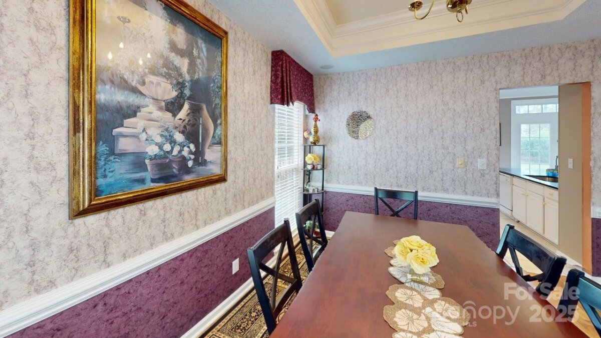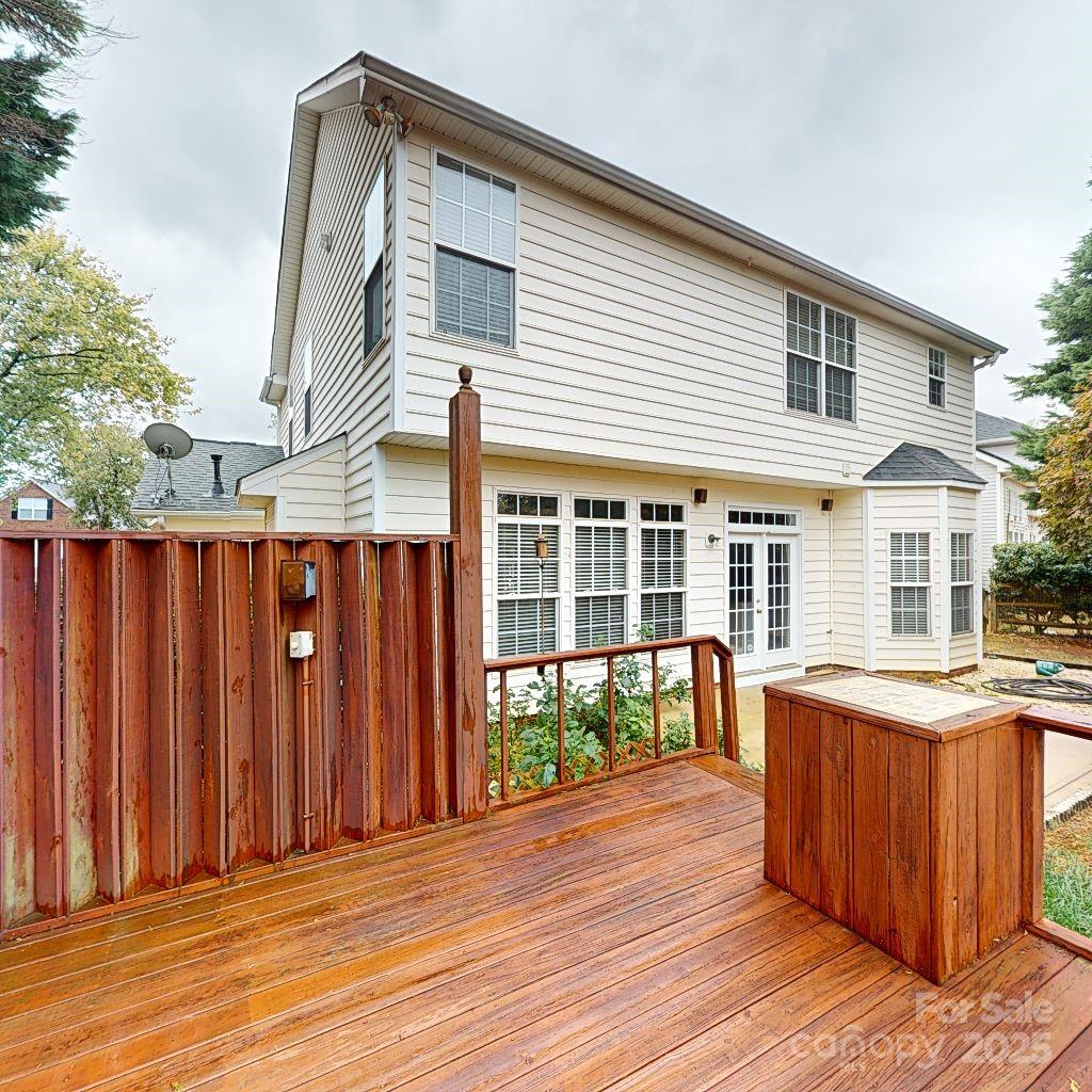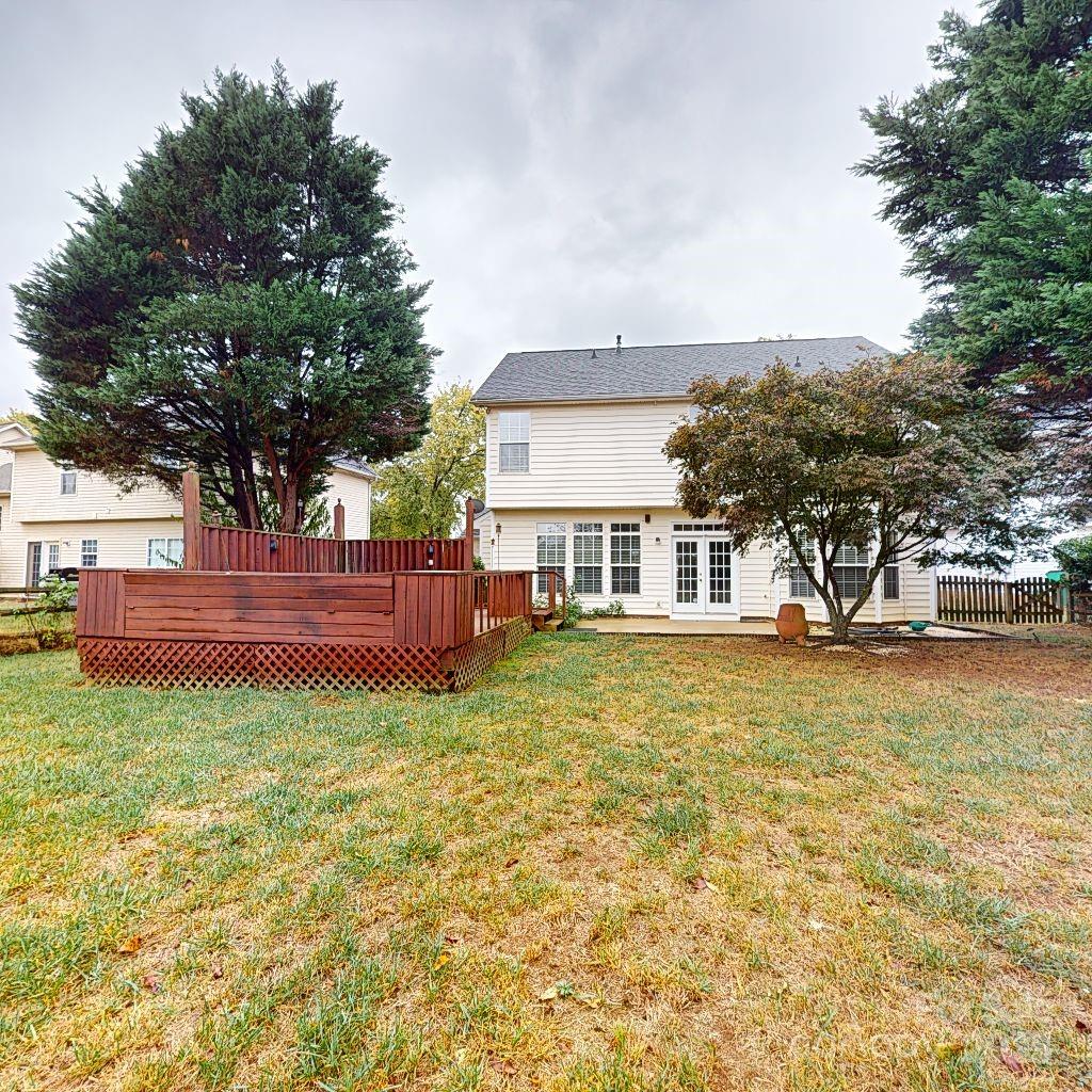 Welcome to this stunning home nestled in the sought-after Blakeney Heath neighborhood—ideally located just behind Blakeney Shopping Center and minutes from Ballantyne. This 4-bedroom, 2.5-bath residence is filled with natural light, featuring large windows and French doors that open to a private backyard with a raised deck, perfect for entertaining or relaxing outdoors. The kitchen boasts granite countertops, white cabinetry, and matching white appliances, creating a bright and welcoming space. The main level offers multiple gathering areas, including a formal dining room, a cozy breakfast area, and an inviting living room—perfect for family dinners, game nights, or entertaining friends.