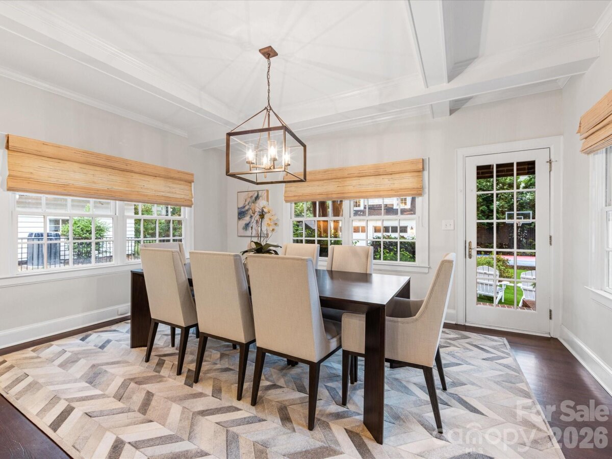 Nestled in the heart of Dilworth on an oversized lot, 1201 Belgrave offers rare space and luxury in one of Charlotte’s most sought-after neighborhoods. This fully renovated home features 5 bedrooms and 3.5 baths, including a primary suite on the main level with dual closets and a versatile office or sitting room. Upstairs you'll find two bedrooms adjoined with an updated full bath and a spacious bonus room, plus dedicated office. The gorgeous chef’s kitchen boasts a wolf range, ss appliances, a large marble island and generous dining area. The kitchen opens into the incredible light-filled family room that boasts built-ins flanking the fireplace and a wall of windows and french doors leading out back. Side entry provides drop-zone with mudroom and large laundry room with ample storage. Detached two-car garage includes a sixth bedroom above with kitchenette and full bath, ideal for guests. Outdoor living is unmatched with an oversized covered porch and fireplace, built-in outdoor kitchen, turfed backyard, and sport court. Fully fenced with electric gate. Fabulous location near Latta Park, convenient to Uptown and all that Dilworth has to offer!