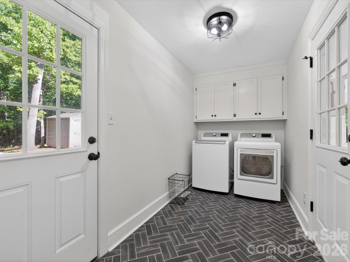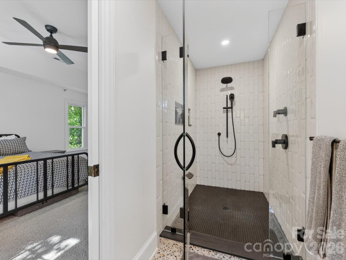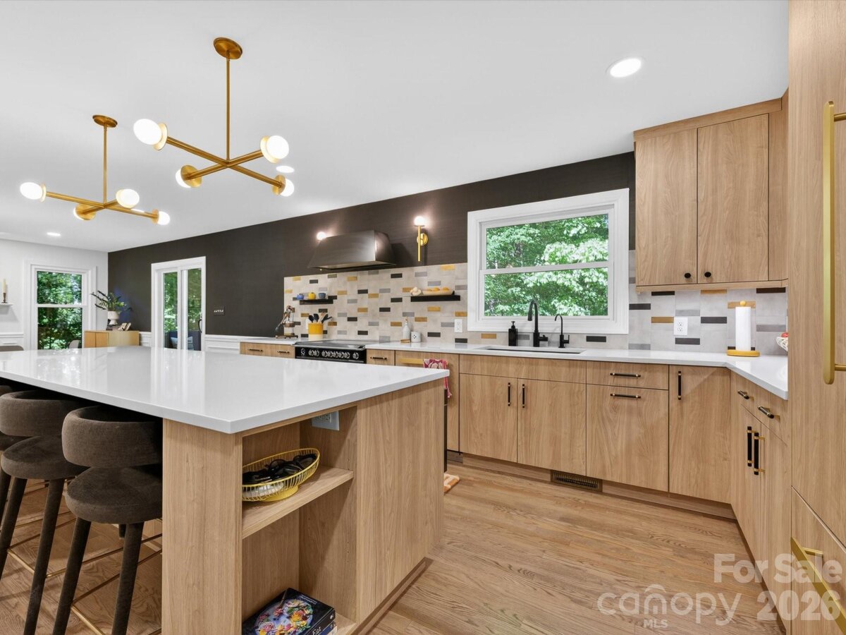 Designer dream home in the heart of Matthews! Experience elevated living in this beautifully reimagined 4-bedroom, 2.5-bath home complete with a spacious bonus room and a versatile main-level flex space ideal for an office or playroom. At the center of the home, a high-end kitchen-dining renovation (2025) delivers exceptional design and craftsmanship. The space is anchored by an impressive 10’ island and features quartz countertops, custom cabinetry, designer backsplash, and an expanded pantry. A suite of premium, integrated appliances including a JennAir Noir custom-paneled refrigerator, Fisher & Paykel Series 9 induction range, Bosch 800 Series dishwasher, Sharp drawer microwave, and Faber range hood. Plus, thoughtful custom elements such as toe-kick drawers and a concealed robot vacuum cabinet. The primary suite is a true retreat, fully transformed in 2025 with a spa-inspired bath showcasing heated marble terrazzo flooring, a custom reeded vanity with sliding cabinet inserts, frameless glass shower and curated designer tile selections. Step outside to the large deck overlooking a private, wooded setting... offering a tranquil backdrop for entertaining or quiet relaxation. Additional updates include new solid red oak hardwoods on the main level (2024), upstairs HVAC system (2024), roof (2022), upstairs carpet (2022), washer and dryer (2023), hot water heater (2026), and brand-new Insignia windows throughout (2026). Located in a friendly community with no HOA, this home offers convenient walkable access to downtown Matthews restaurants, shops, parks, greenway trails, community events and more. Optional membership to the Hampton Green neighborhood pool is also available. For the buyer who values design, quality, and a truly turnkey experience, this home delivers at every level. Offering the rare opportunity to step into a fully renovated, thoughtfully curated space without compromise. This is Matthews living at its finest! ________________________________________