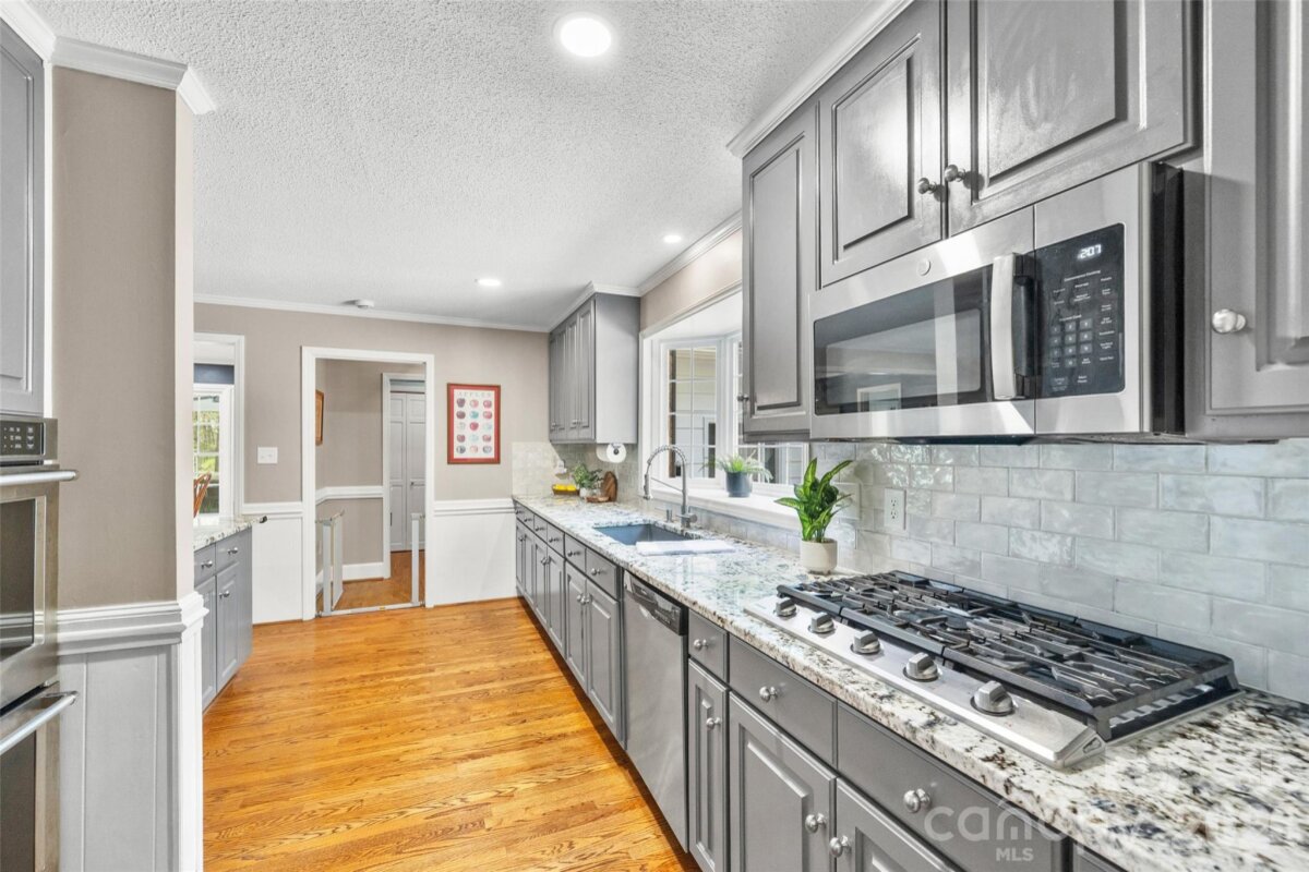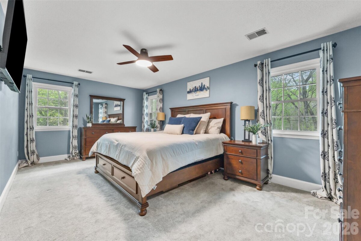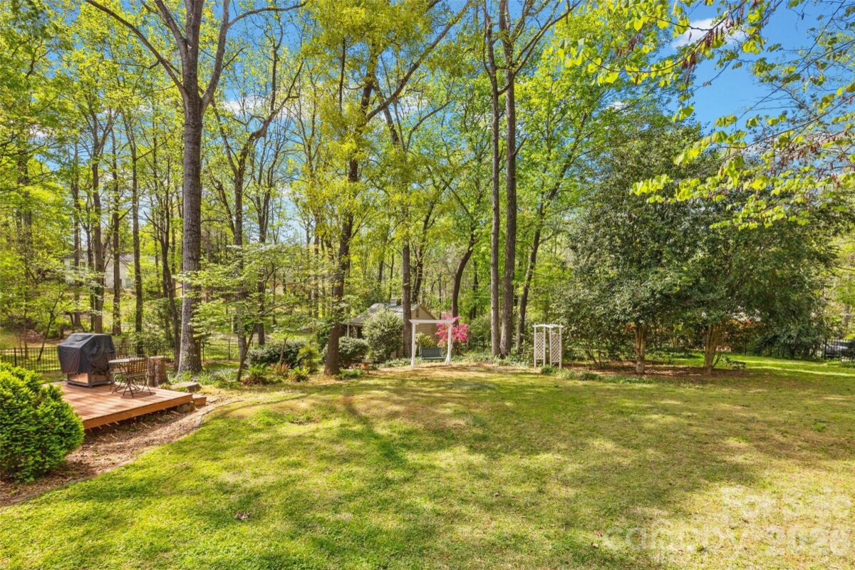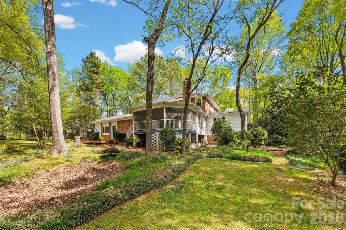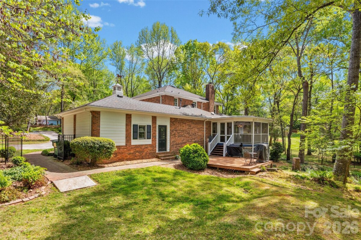 Incredible opportunity in the highly sought after Providence Ridge neighoborhood! This custom 4 bedroom, 3.5 bath brick home sits on almost an acre of land with a back yard that truly feels like your own private retreat. So many unique features including two primary bedroom suites - one on the main level and one upstairs. The main level also includes a formal dining room, large family room, sun room, breakfast area and flex space that is currently being used as a movie room. The kitchen boasts newer granite countertops, a stone sink, and an island. Upstairs you'll find one of the primary bedroom suites with a walk-in closet, two additional bedrooms and another full bath. Current owners have updated the bathrooms, installed new carpet, replaced the porch roof, installed all new light fixtures and can lighting, a new attic fan and enclosed the walkway to the oversized two car garage. Outside is truly an oasis with beautiful landscaping, a screened-in back porch, and a fenced in back yard. All of this in a prime Charlotte location!