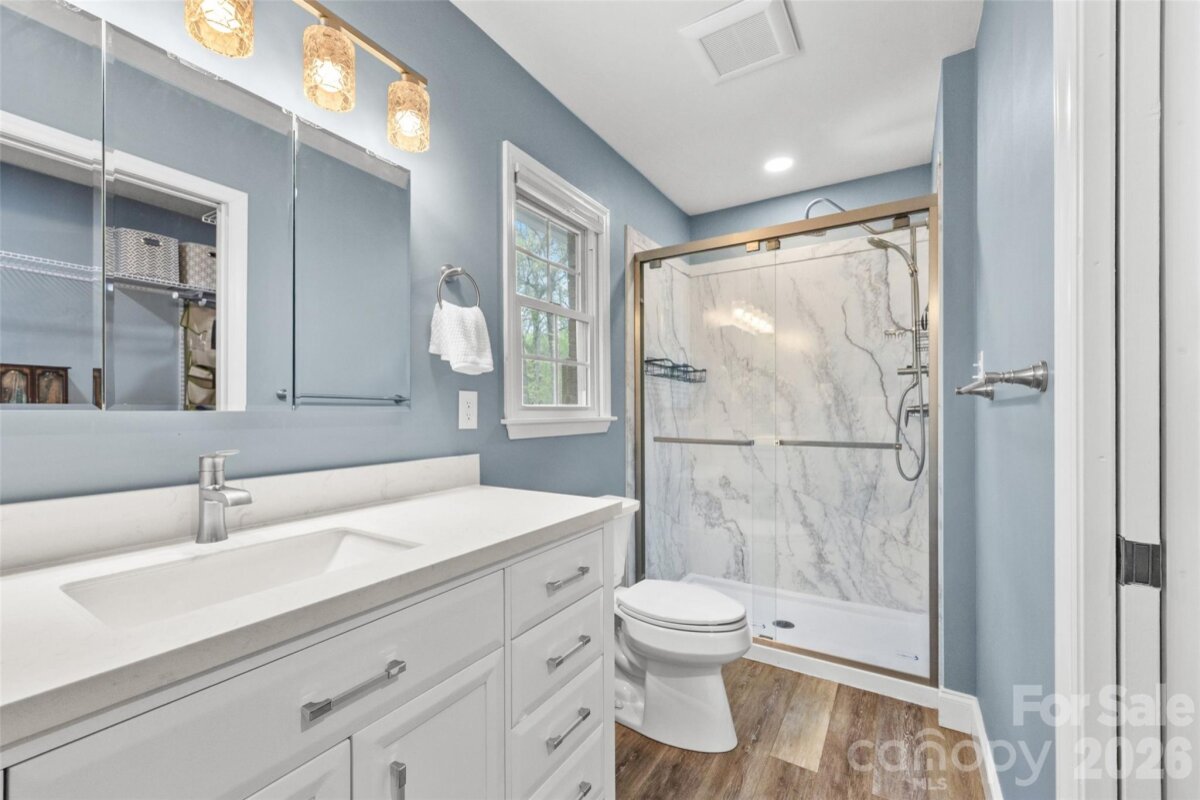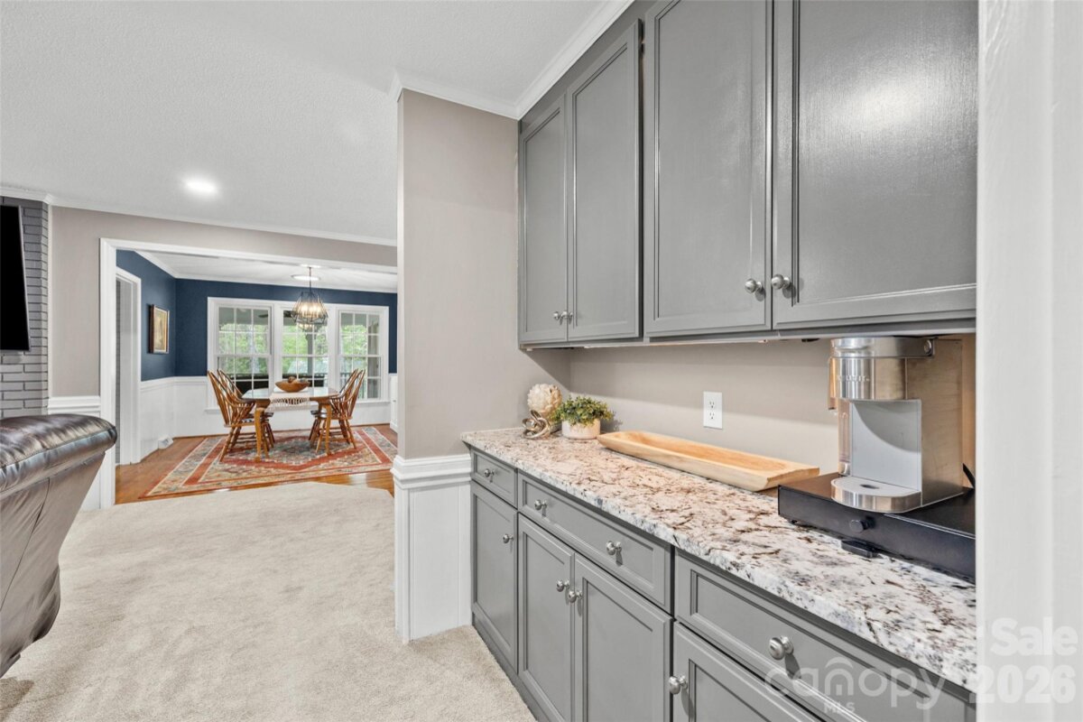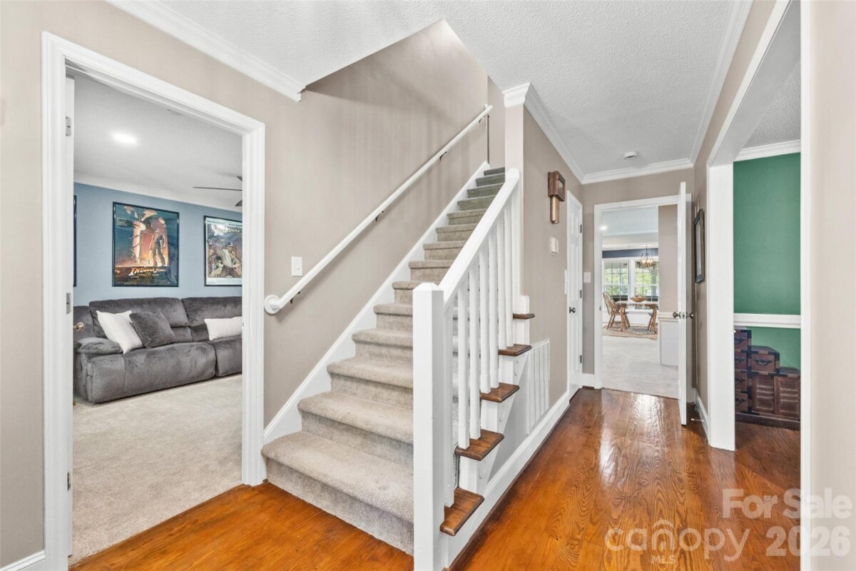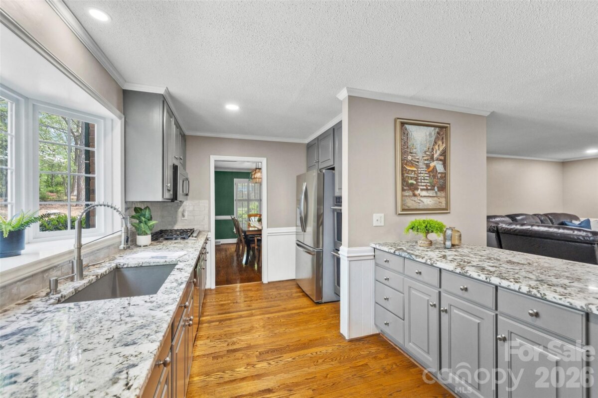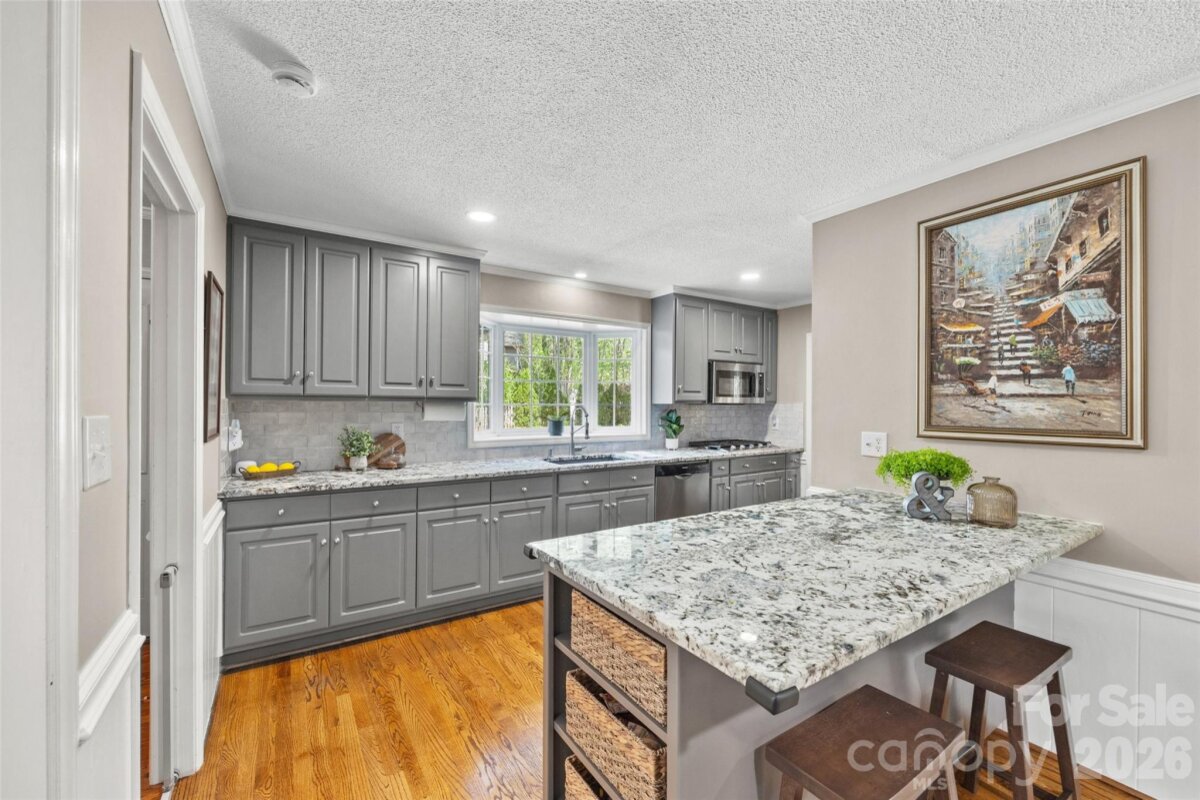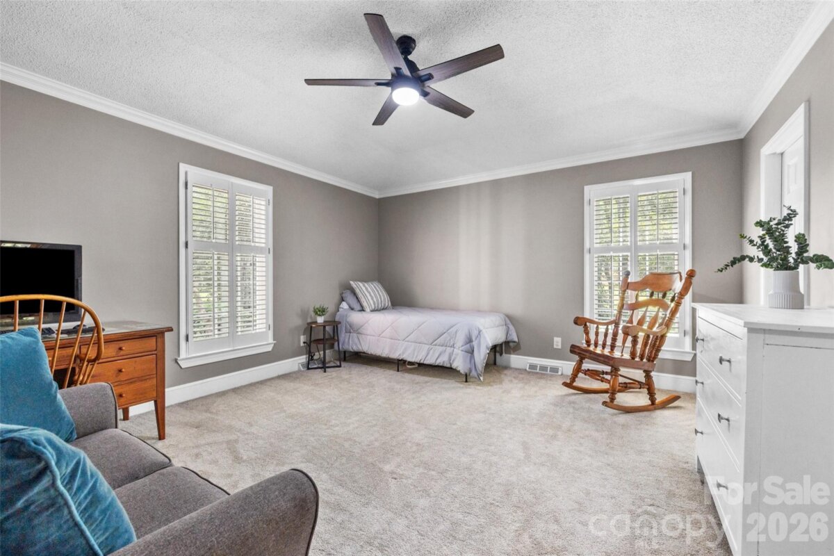 Incredible opportunity in the highly sought after Providence Ridge neighoborhood! This custom 4 bedroom, 3.5 bath brick home sits on almost an acre of land with a back yard that truly feels like your own private retreat. So many unique features including two primary bedroom suites - one on the main level and one upstairs. The main level also includes a formal dining room, large family room, sun room, breakfast area and flex space that is currently being used as a movie room. The kitchen boasts newer granite countertops, a stone sink, and an island. Upstairs you'll find one of the primary bedroom suites with a walk-in closet, two additional bedrooms and another full bath. Current owners have updated the bathrooms, installed new carpet, replaced the porch roof, installed all new light fixtures and can lighting, a new attic fan and enclosed the walkway to the oversized two car garage. Outside is truly an oasis with beautiful landscaping, a screened-in back porch, and a fenced in back yard. All of this in a prime Charlotte location!
