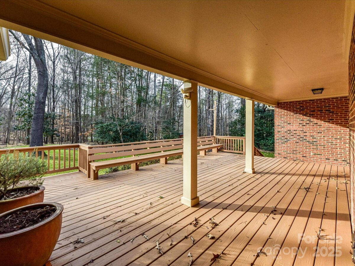 Beautiful custom ranch home with high ceilings, gracious moldings and the perfect floor plan on just over an acre of land! Most of the home has been freshly painted, and the kitchen was just renovated with new white quartz countertops and a gorgeous backsplash. High end appliances include a Wolf cooktop. The primary bathroom is a renovator's dream - it's in good shape now but has a fabulous footprint for your buyer to realize their vision in the space. All bedrooms are very large. The garage has so much extra storage with walk-up stairs above. Outdoors the oversized deck is partially covered and the lot is amazing space that provides premium privacy. The cherry on top is the workshop, served by a separate entrance - a woodworker's dream! Premium Weddington schools, very highly rated, and Weddington High were the 2023 North Carolina 4A Football State Champions. Close to Matthews, Waverly, and a short distance to I-485.