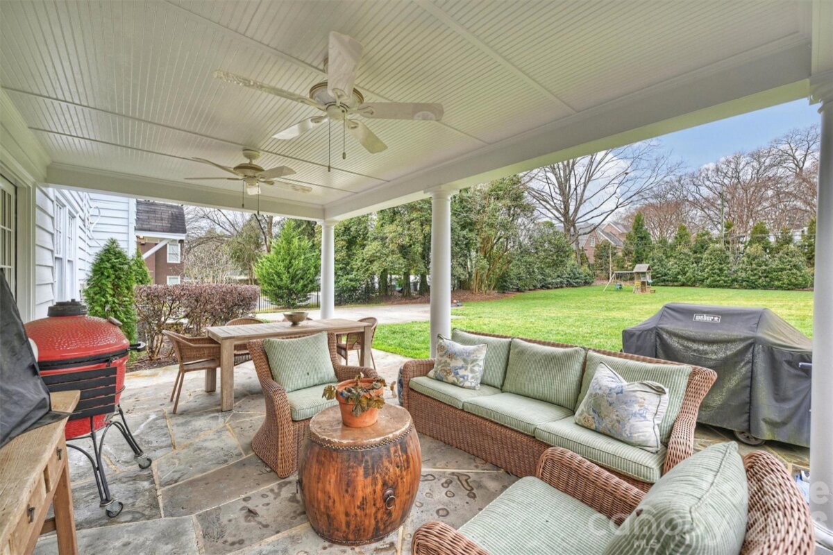Extensively renovated in 2020, this Myers Park home offers high-quality finishes and thoughtful updates throughout the first and second floors. Nearly every surface has been replaced or improved within the past five years, creating a truly move-in-ready property. The custom inset kitchen features panel-ready Thermador appliances, quartz countertops, unlacquered brass plumbing fixtures and hardware, new windows, and a built-in bar with beverage refrigerator. Kitchen and den are wired for Sonos. The laundry room includes custom cabinetry, quartz countertops, and new washer and dryer. The family room offers custom built-ins with library lighting and new gas logs. The powder room and primary bath were fully renovated with marble floors and countertops and custom cabinetry. Secondary baths have been updated with new tile, lighting, plumbing fixtures, and marble counters. Recessed lighting was added throughout bedrooms and main living areas. All lighting, interior paint, and door hardware were updated in 2020. New wood floors were installed in the kitchen, foyer, and powder room, and all existing hardwoods were refinished in 2020. Exterior improvements include a new fence (2020), custom brick car park and walkway (2021), front and rear landscaping with custom lighting (2021 & 2023), exterior paint (front 2022, rear 2025), new exterior lighting, and a new downstairs furnace and compressor (2021).