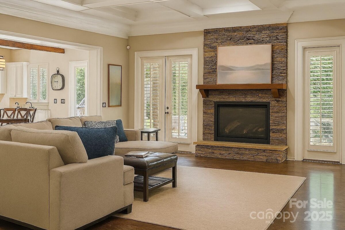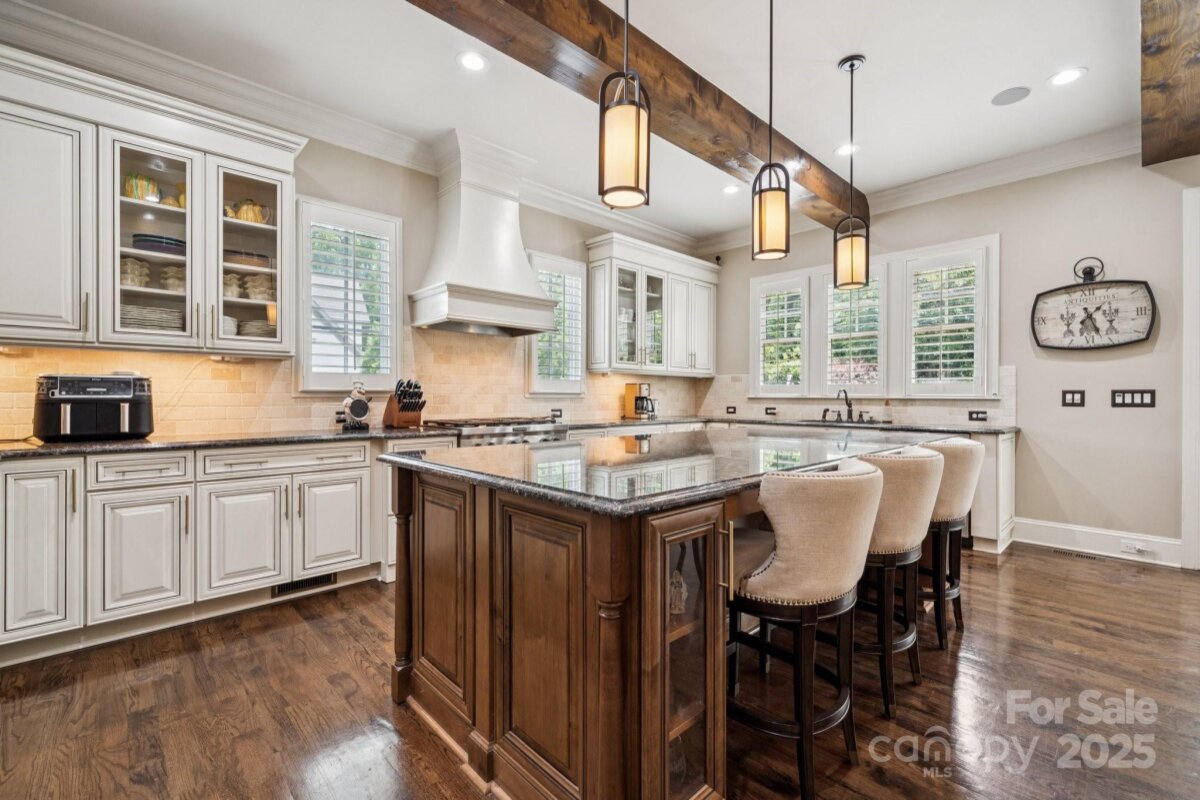 Welcome to 2145 Foxcroft Woods Lane! This home features an amazing floor plan with large, spacious rooms, gorgeous kitchen, guest bedroom suite on main floor, and a lovely covered porch overlooking a large open patio and beautiful, lush backyard. Located 2 minutes to South Park Mall and 10 minutes to uptown Charlotte, this impressive home has a gorgeous kitchen with professional grade appliances, extra large island, custom cabinetry, granite c-tops and is open to the generous and comfortable great room. On the main floor, there is also a formal living room/study, dining room, wet bar area with amazing storage, and a large drop zone with cabinets located by the 3 car attached garage. The spacious primary suite has it's own fireplace and a private stackable laundry in the closet, in addition to the spacious laundry room also located on the 2nd floor. We are adding a couple of layers of landscape to the side yard to provide more privacy. This home is move-in ready and a pleasure to show!