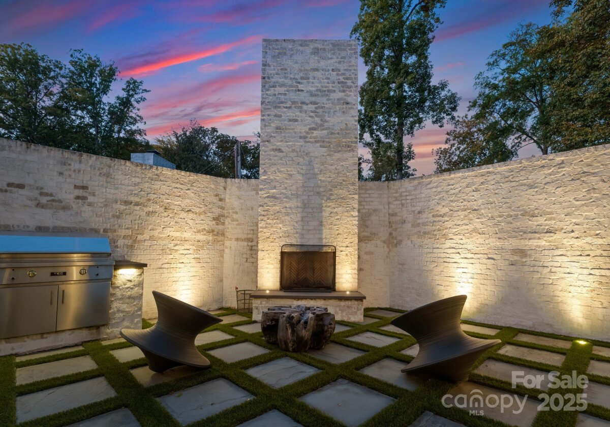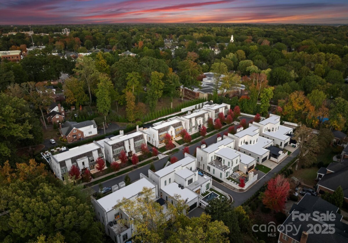 Tucked on a quiet cul-de-sac in one of Charlotte’s most sought-after areas, this residence blends refined luxury with modern comfort just minutes from SouthPark, Myers Park, Eastover, and Uptown. Its prime location offers walkable access to shops, restaurants, and medical facilities, with top public and private schools close by. Situated between Foxcroft and Cotswold, Kenwood Sharon Lane is an exclusive collection of ten custom homes designed by Don Duffy and artfully built by Thomasson Builders. Sold fully furnished, including curated pieces from designer furniture label Verellen, this home showcases impeccable craftsmanship, timeless finishes, and an effortless indoor-outdoor flow. The main level features a grand two-story foyer, 10’ ceilings, a powder room, and a stunning open-concept living and kitchen area. The chef’s kitchen is equipped with Sub-Zero, Wolf, ASKO, and Liebherr appliances, complemented by soft-close drawers, extensive custom cabinetry, and a walk-in pantry. The elegant main-level primary suite offers an expansive spa-inspired bath with dual vanities, heated flooring, a glass walk-in shower, and a freestanding tub, as well as a large custom walk-in closet with built-in shelving and storage. Additional main-level spaces include a butler’s pantry with a coffee bar, display shelving, and two wine refrigerators, an inviting living room with a modern gas fireplace and custom built-ins, a spacious family room, an office or formal sitting room, and a functional drop zone/laundry room with a dog wash and feeding station. Upstairs, two spacious guest suites each feature designer lighting, walk-in closets, and luxurious ensuite baths. Outdoor living is elevated with a covered rear patio featuring an electronically controlled louvered roof, a built-in TEC grill station, an outdoor fireplace, and beautifully landscaped surroundings with full security coverage. A rare turnkey offering in a prime Charlotte location!