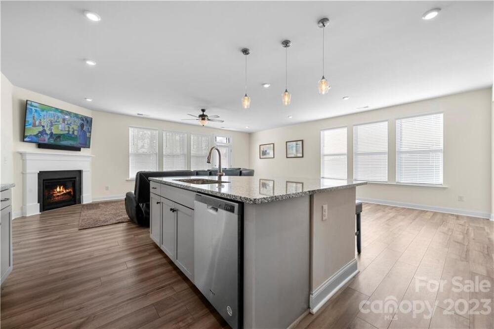 Better than new construction and ready to move in. Built in December of 2021, this popular end-unit Salisbury model is ready for you to call home. Functional and convenient mud room off the 2 car garage leads to an open kitchen with a large seating/work island, abundant cabinets, built-in wall oven and walk-in pantry. Large, open family room has gas fireplace and plenty of windows for natural light. Oversize Owner’s Suite features two walk-in closets and a full bathroom with dual vanities sinks. Paddler's Cove is conveniently located in Lake Wylie in the Award Winning Clover District. Neighborhood amenities include community pool & cabana, sidewalks and street lights. Easy access to Field Day Park!