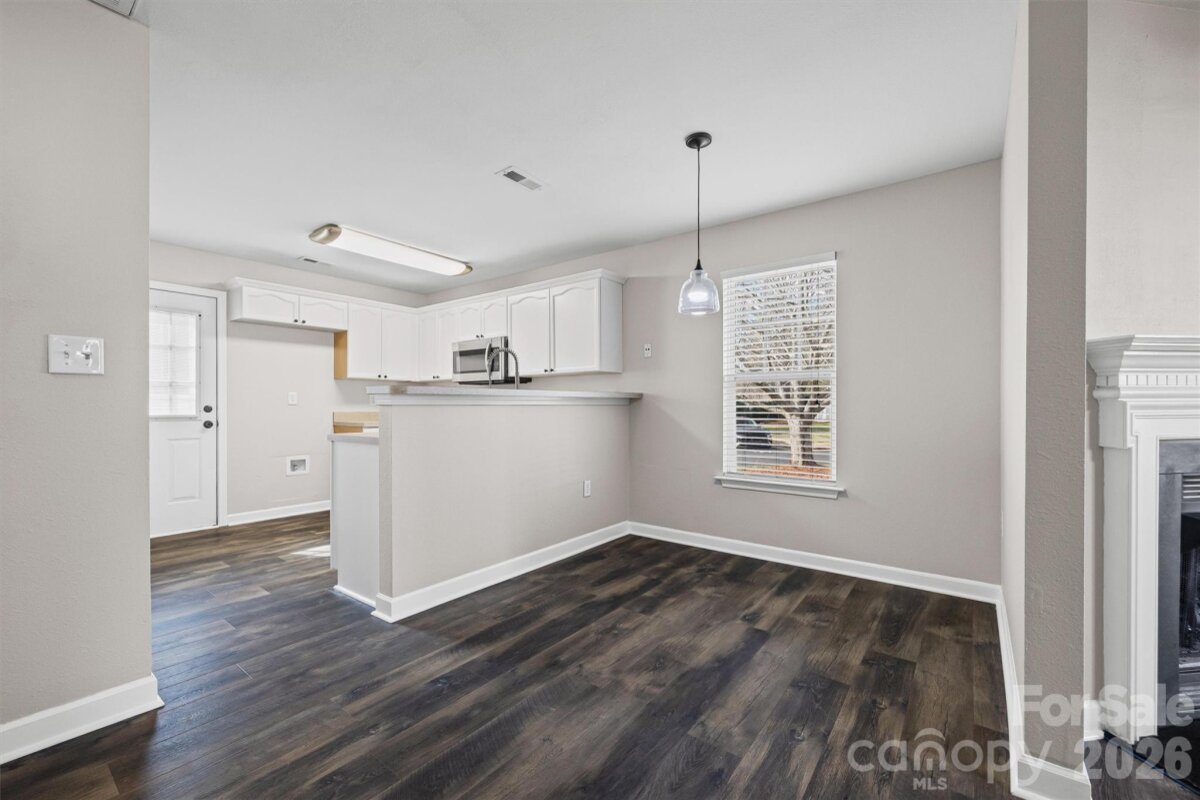 WELCOME HOME!!! Upon walking up to this immaculate & updated corner/end-unit townhome, you are greeted by a cute little covered front porch. As you enter, the newer upgraded vinyl plank flooring throughout the living areas, kitchen, dining area and bathroom, welcomes you in. This home has been recently updated with fresh paint, new carpet, new water heater and a refinished bathtub. The vinyl plank flooring and downstairs carpet are less than three years old and the HVAC and ALL new plumbing throughout were installed about four years ago. Downstairs boasts an open floor plan, featuring a cozy gas fireplace w/ newer gas logs, anchoring the family room. The fireplace is a wonderful, architectural focal point. A kitchen, with freshly painted cabinets, breakfast bar, dining area, laundry room, two bedrooms and a full bath round out the main level. The back door in the kitchen features enclosed blinds (No dusting necessary!) and leads out to a fully enclosed and very private and level backyard. And, yes, the storage shed conveys. Fencing was installed about two years ago. The laundry/utility room is a very good size with lots of storage, plus... the washer and dryer also convey. The downstairs bedrooms include good size closets and newer carpet. The full bath downstairs has a newly refinished tub/shower and a new toilet. Heading upstairs to the private owners' suite, you will find all brand new carpet. There are two large windows to let in lots of light, a large walk-in closet and an additional enclosed storage nook This home also has surround sound speakers upstairs and all windows throughout the home are fitted with faux wood blinds. Don't miss out on this little Lake Wylie gem! It has so much to offer, including a community pool. Award winning A+ Clover Schools, including the brand new, soon-to-be-open Lake Wylie High School (Opening for the 2026-2027 school year.). Short driving distance to Charlotte Airport, Uptown Charlotte, Belmont and Historic York. Close to restaurants, shopping and outdoor activities, like hiking, bicycling and lake activities. Lake Wylie, with all it has to offer, is right down the street. Low SC taxes. Fireplace is sold as/is, but has no known defects. Agent is related to the sellers.
