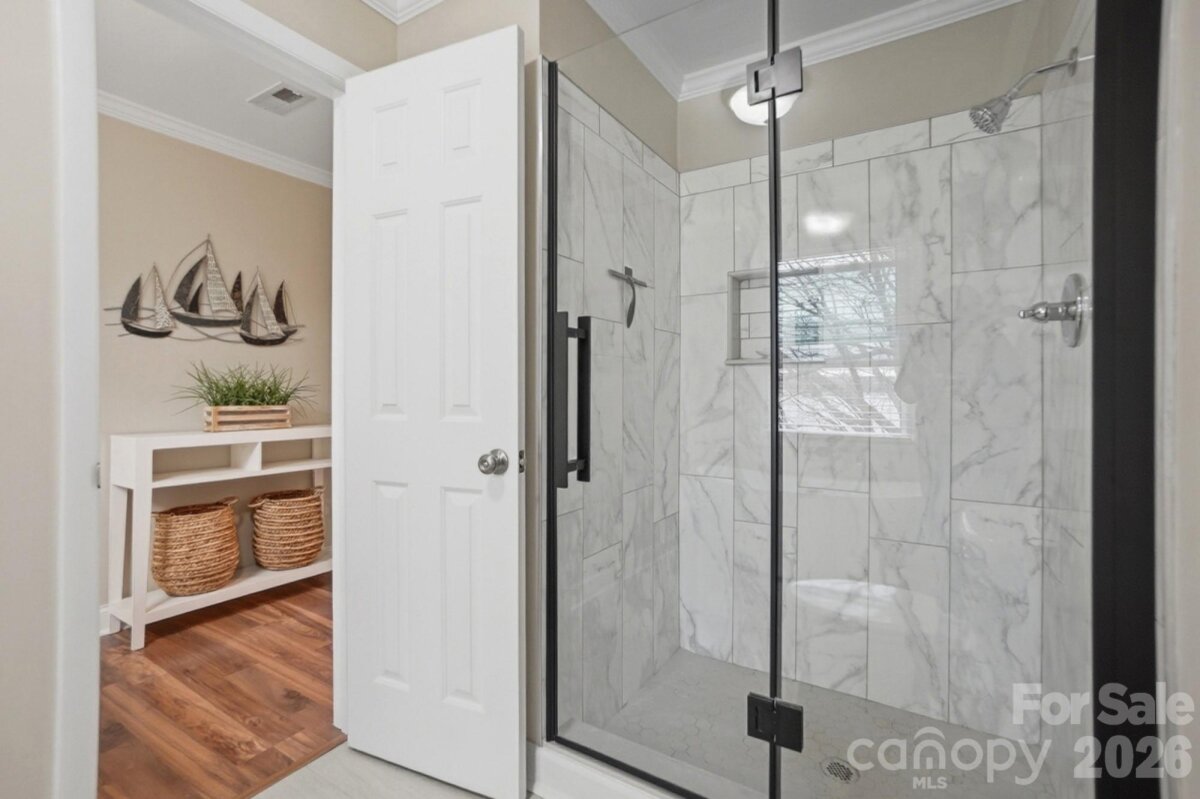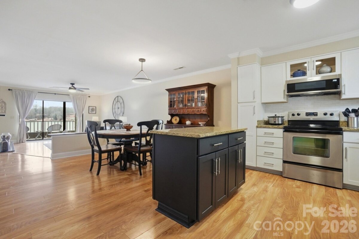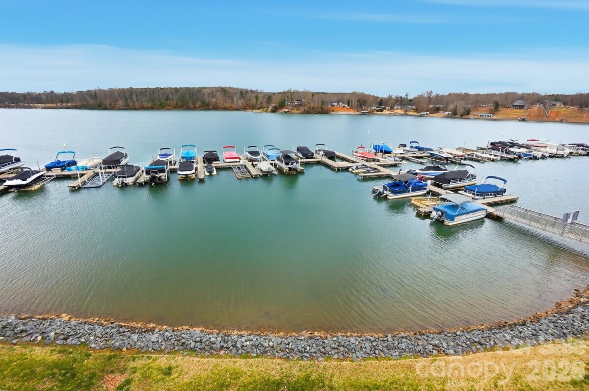Lake Wylie's best kept secret! This beautifully updated Emerald Point end-unit has an over 180 degree view of the lake. Relax the moment you walk through the entry. Enjoy the breathtaking panoramic views from the main living area which features an open floorplan and wide sliding doors, the large covered deck with trex flooring, and a primary bedroom retreat where sunset views fill both the rear and side windows and private deck door. Well designed primary bath layout creates a separation between the windowed double vanity area from another well-lit large shower, toilet, and freestanding tub, and a walk-in closet. The second bedroom also has double windows and a nearby hall bathroom with vanity area separate from the toilet and shower room. Fresh light and neutral paint, as well as updated finishings throughout make for a move-in-ready fulltime residence or weekend retreat. The kitchen is bright with white cabinets, tile backsplash, granite countertops and stainless steel appliances and island. There is plenty of space in the dining area to seat company. Winter views are also extraordinary, and a cozy time can be had in front of the wood burning fireplace. Extras include: Rinnai electric instant water heater, built in office/computer station in living area, easy two step then level access from parking to front door. Building roof was replaced in 2022. Unit is located in the building adjacent to the inground community pool. Kayak launch and storage available onsite for homeowners. Dues include: landscaping, pool maintenance, water/sewer, trash, common area maintenance, exterior repairs, administration expenses, bare wall building insurance, flooding insurance, 21% of the monthly fee is dedicated to the reserve fund. No deeded boat slip with this unit; however, boat slips become available for rent. See community website (emeraldpointcondosclt.com) under the bulletin board. Recent assessment was for fire sprinkler replacement in four buildings, shoreline erosion project work and a fire system replacement. Final assessment payment of $2026.02 due 4/1/27 will be paid by Seller at closing. A one-time capital contribution of $890.64 is to be paid by the Buyer at closing. Emerald point is located only minutes from dining and shopping, and 485, only a few exits from the Charlotte Douglas International airport, and a breeze via 485 to 77 or 85 for easy commutes.